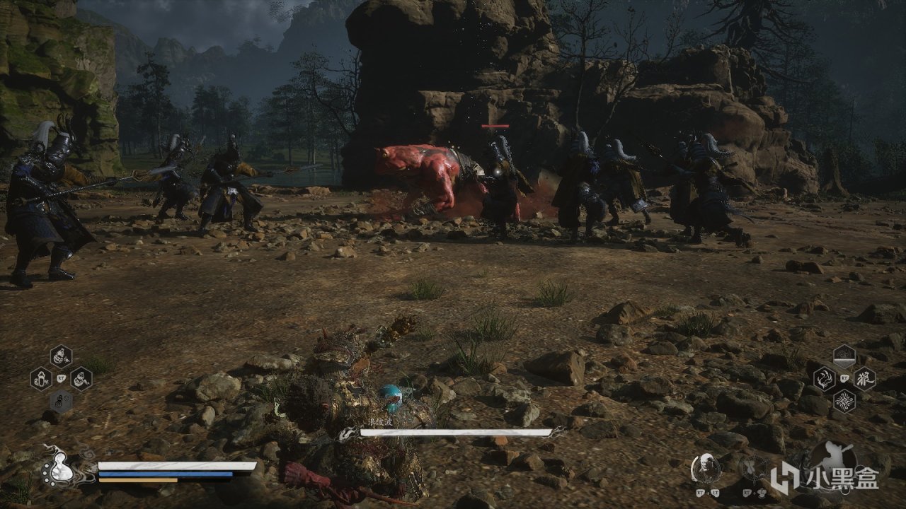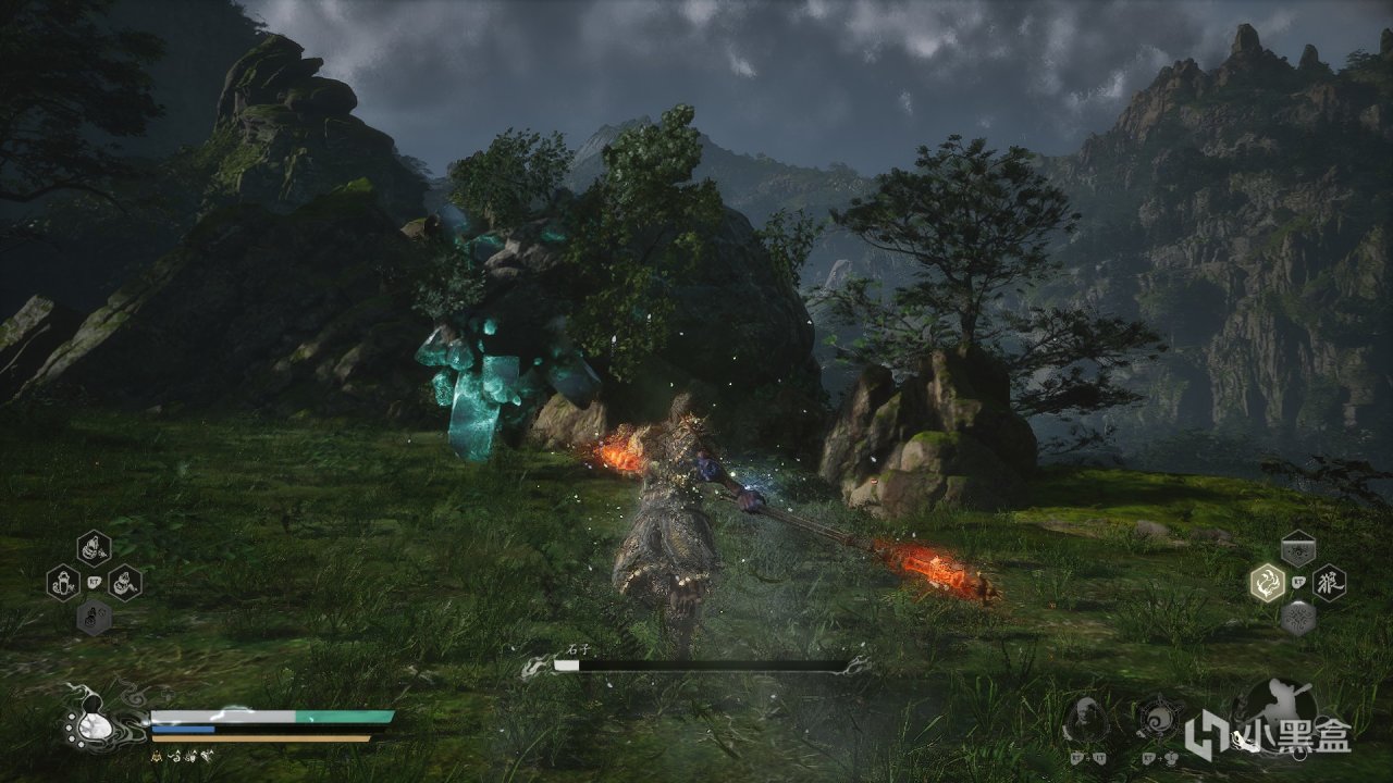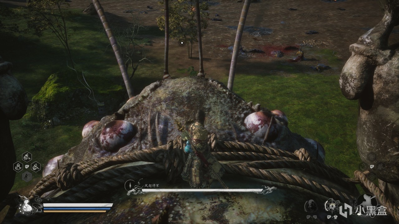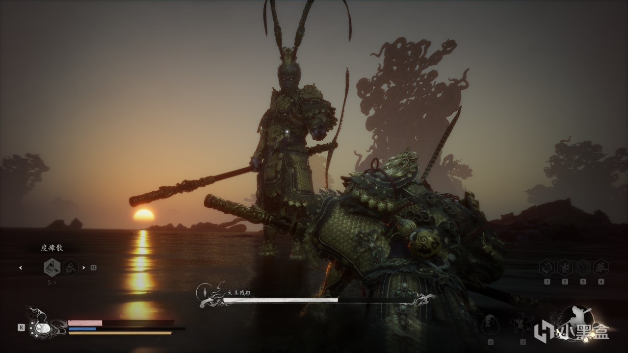 體驗及解析:無論是石猴還是大聖殘軀都是兩管血條。石猴一階段很好打,二階段附加屬性傷害(冰+火),殘血會分身,這個時候不要慌,很好打的。打完石猴以後會觸發動畫,然後接着滿血滿狀態打大聖殘軀,但是如果中途死了,不用再打石猴。大聖殘軀難打,給大家一個方法,參考一下。首先大聖殘軀一階段我們可以蓄力到4棍勢,下水前先蓄力到四重棍過去打一棒子,遠離他,等他扔完棍子繼續遠離蓄力到4棍勢,再過去給一棍子,循環往復,四棍子可以解決。二階段會剝奪我們的能力,不能蓄力到四棍勢,這個時候我只能給大家一個建議,當你輕棍打他,大聖會聚形化氣,所以我們不用這樣打,我們蓄力到3棍勢,靠近大聖,他出招以後我們鬆手,換血。(博主說他是指令怪,你出招他就會化解你)