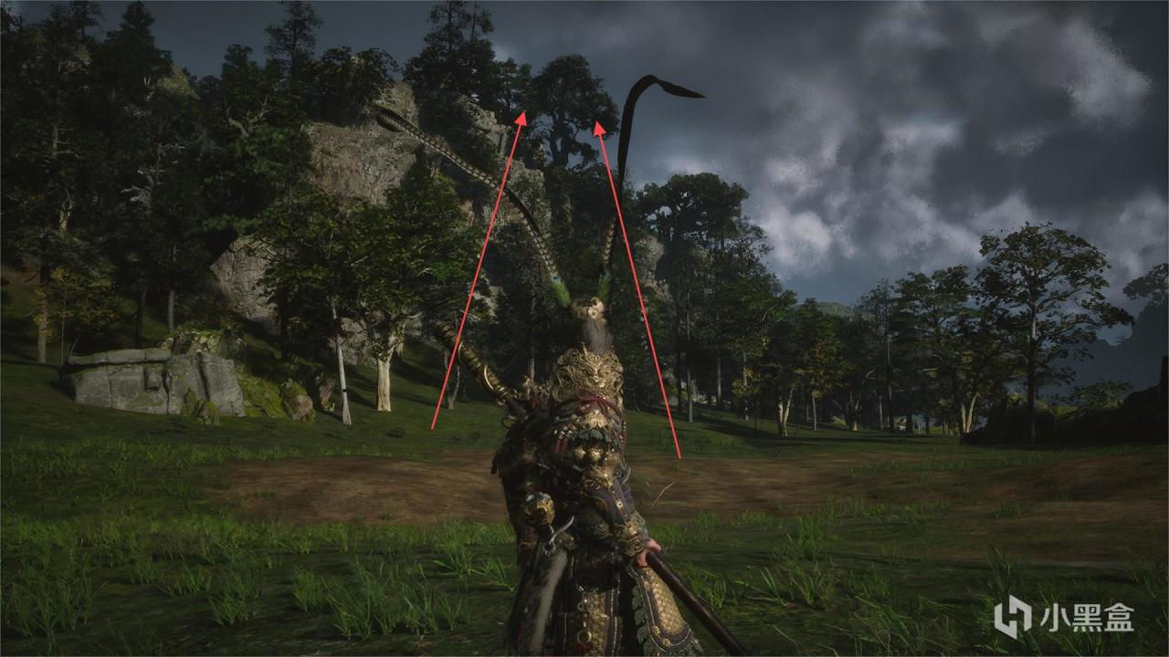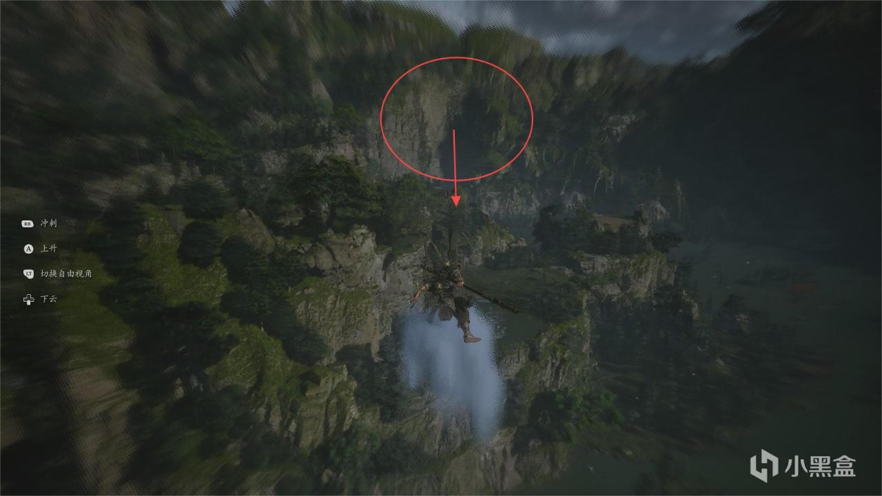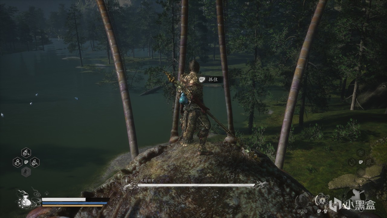 體驗及解析:風翅將軍他是跳來跳去的,兩個落點在石子對面,大家應該可以看到。這個大螞蚱不用打的,鳳翅紫金冠(大聖的標配)在它的頭上,我們上去它頭上拔出來就行了。這裏要注意:一是抓住了不要鬆手一直按住(就算你看到大聖鬆手你也別鬆手)。二是第三次落地以後使用闢火罩,不然握不住。