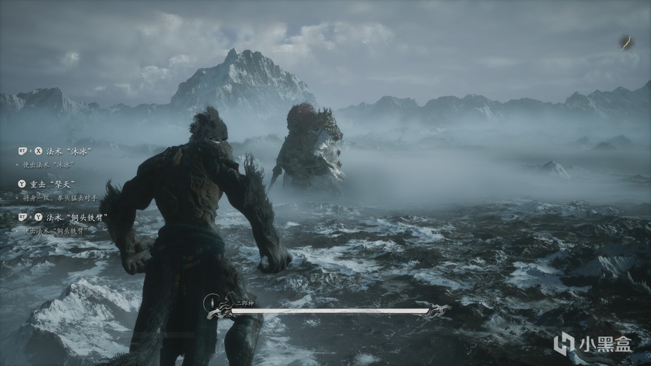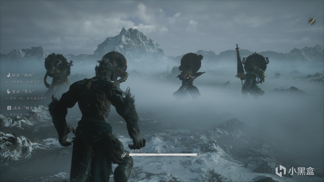 體驗及解析:二郎顯聖真君在小西天浮屠寺裏面和小和尚對話觸發傳送到隱.梅山(影響結局,這裏不劇透)。需要先完成一個任務才能觸發,下面是支線任務。二郎神很難打,作者也是僥倖過的。這裏給大家一個大致的方法,不能說很好用。二郎顯聖真君首先我們帶法寶芭蕉扇,開局上去先用芭蕉扇,他血條上面有一個白色的盾,有白色的盾的時候你輕棍打上去基本上打到都是白色的盾。我們開局芭蕉扇+猴孫輸出可以打到他直接上天(開始掏出斧頭並且重置護盾)。然後下來以後我們儘量用重棍打,這個時候他還沒有給他的武器附上閃電,傷害不會太高,注意你變身他也會變(老虎,老鷹)。打到他第二次上天他就會開眼,並且自己的武器附上閃電,紅色的下砸傷害很高,直接打2/3血量,一定要小心,其餘招式大家適應吧,博主也是僥倖過的。打完以後觸發動畫,可以打到四大天王和二郎神法相(這個階段白給的,大家輕+重亂按都行)。