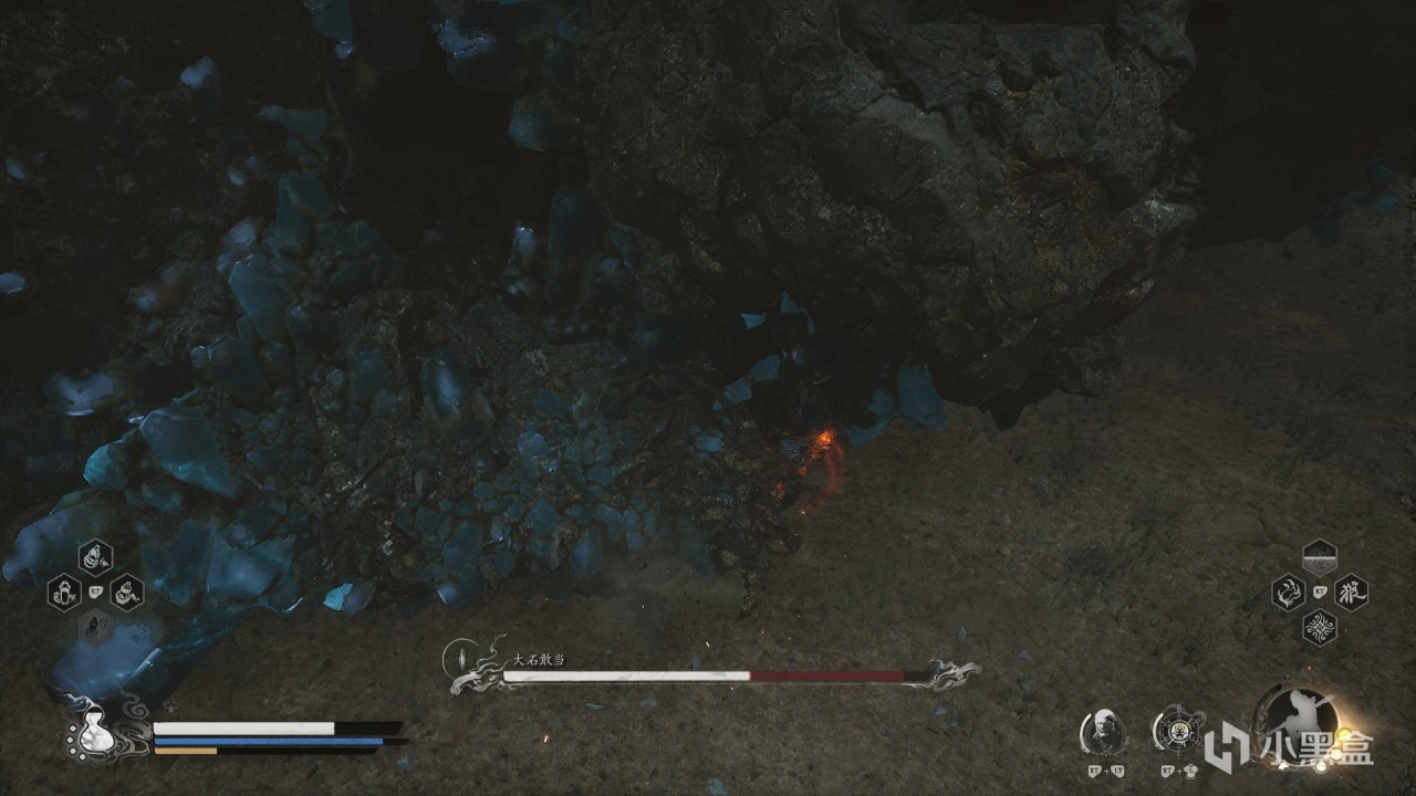 體驗及解析:石子在一個懸崖邊上拍手(預告出現過),好可愛的感覺,二週目我絕對不打他。石子落雷的時候要注意,它突然蓄力雷電下砸可以打2/3以上血量,大家小心被秒了,看着可愛的外表,很危險的。但是它下砸完雷爆以後有很長一段時間的硬直,打得好直接半血打下去。(你不打他你在他旁邊他也不會打你,他只會拍手)。