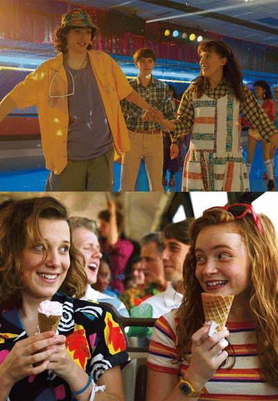 在这个年代里,美国电影与漫画产业正处于朝气蓬勃的的盛行时期,孩子们经常会畅谈X战警、神奇女侠等漫威DC的经典角色,处于青春期的大男生往往会向往80年代的影视巨星,并融合70年代的嬉皮士造型风格,将自己的头发也梳成大人的模样,同时配上一套经典的紧身牛仔裤,尽是展现自己苦苦锻炼的蜜汁翘臀,女生们则会以鲜艳夸张的颜色碰撞、与大胆分明的图案为基础,体现自身的多元化与不受约束的新时代女性象征,辨识度极高。