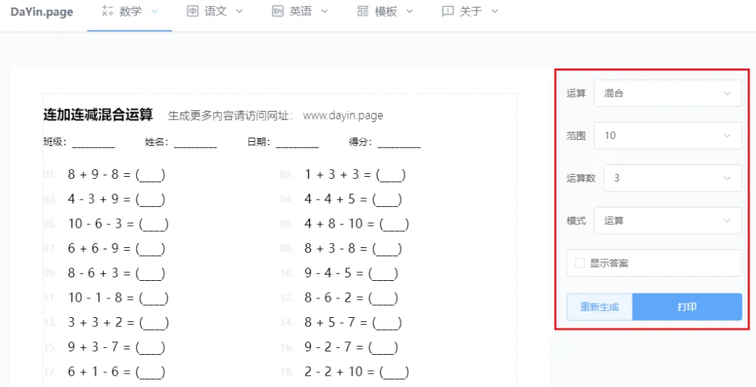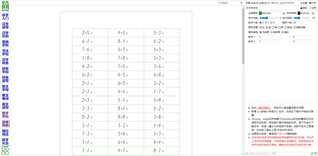 意想不到的是,這款神奇的工具不僅能製作漢字和英文的字帖,居然還能生成各種數學練習,包括基礎的加減運算、借位減法,甚至是數字的分合,真是太不可思議了!