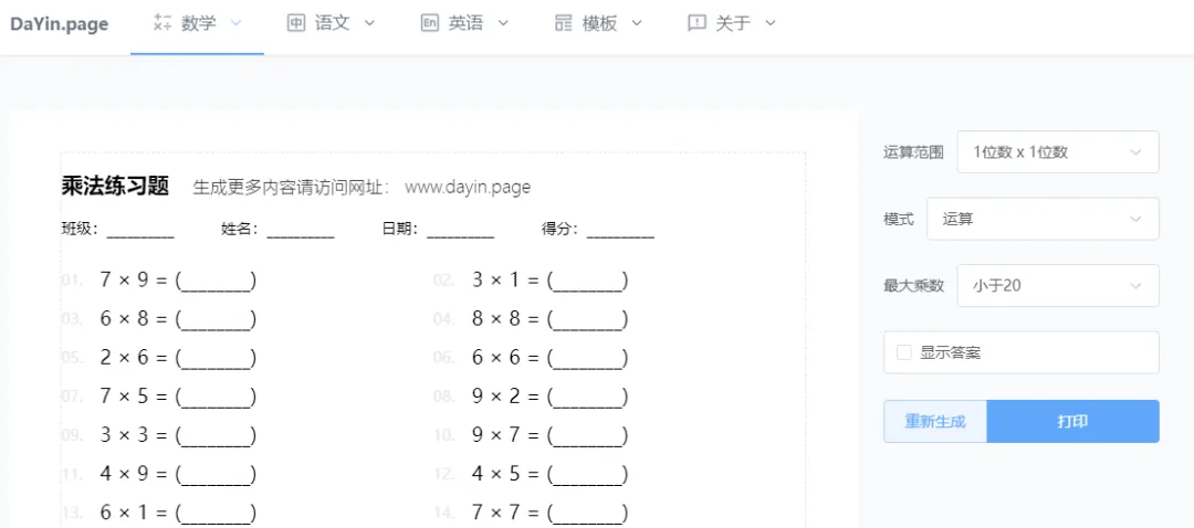 此工具具備出色的功能和簡便的操作性,專門用於創建數學題目,同時還融合了漢字與英文書法練習及各種空白模板,滿足多樣化的使用需求!