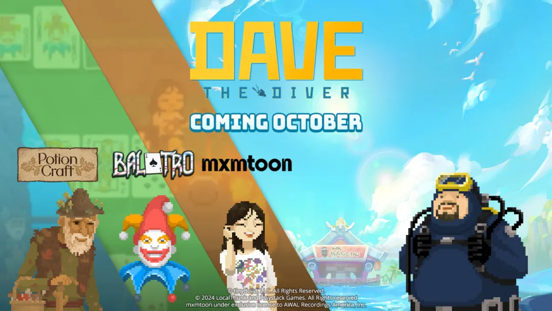 《潛水員戴夫》將於10月推出與《藥劑工藝:鍊金模擬器》、《小丑牌》,以及油管歌手Mxmtoon聯動內容