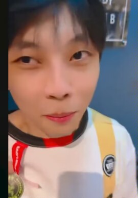 大B以來客套了一下,我和benj啊這些關係都很好,最後不裝了,衣服一脫直接中文說"EDG加油"