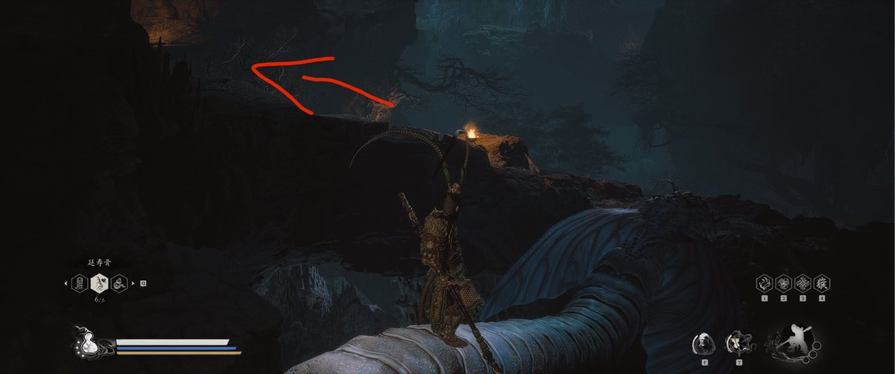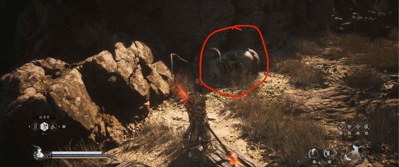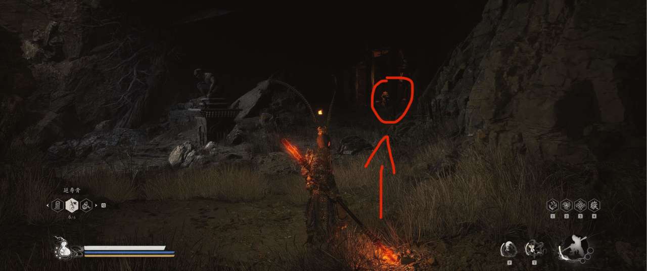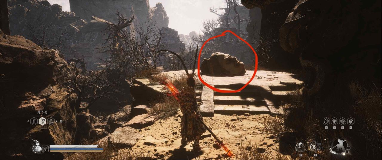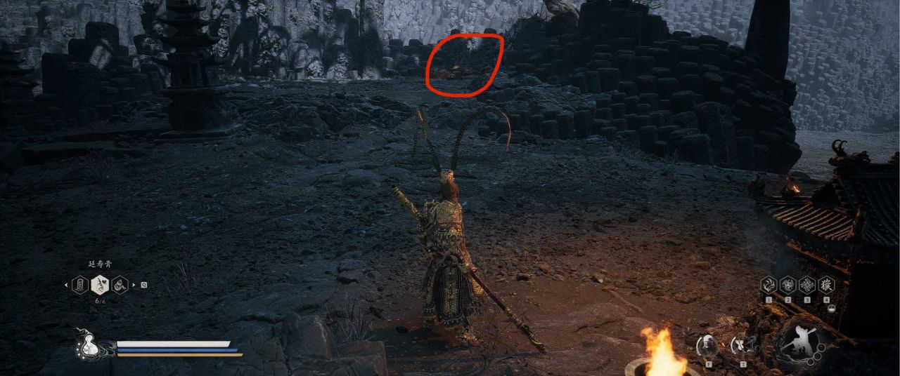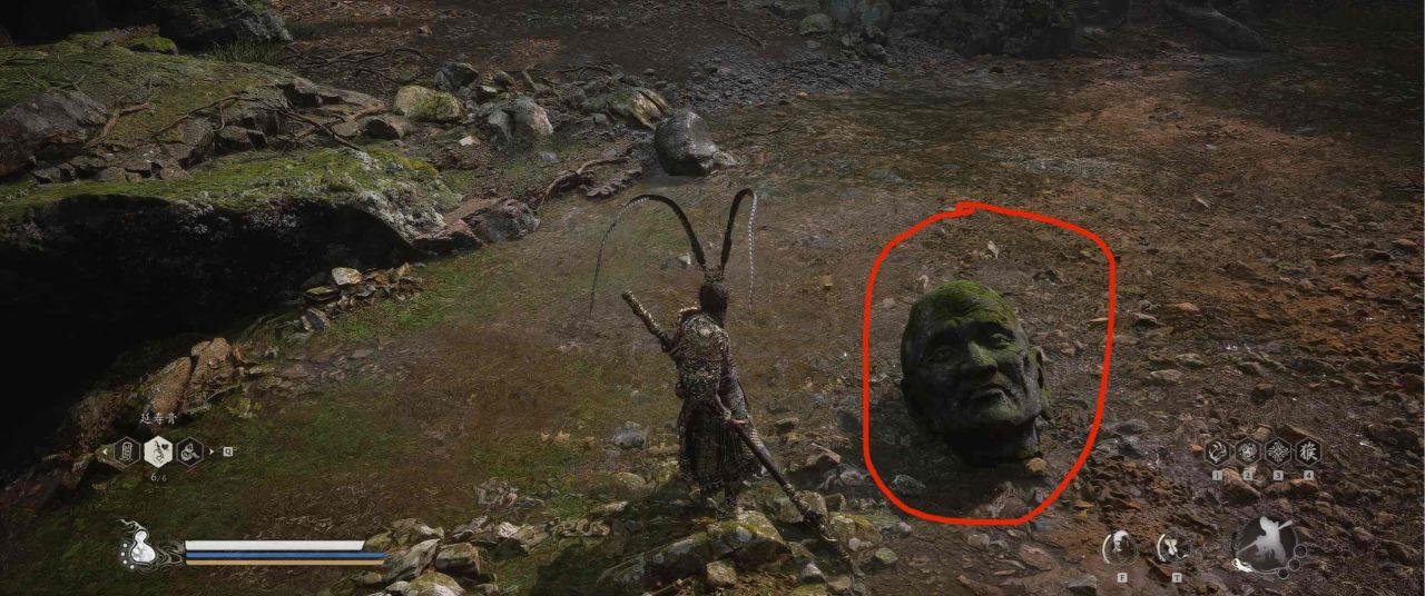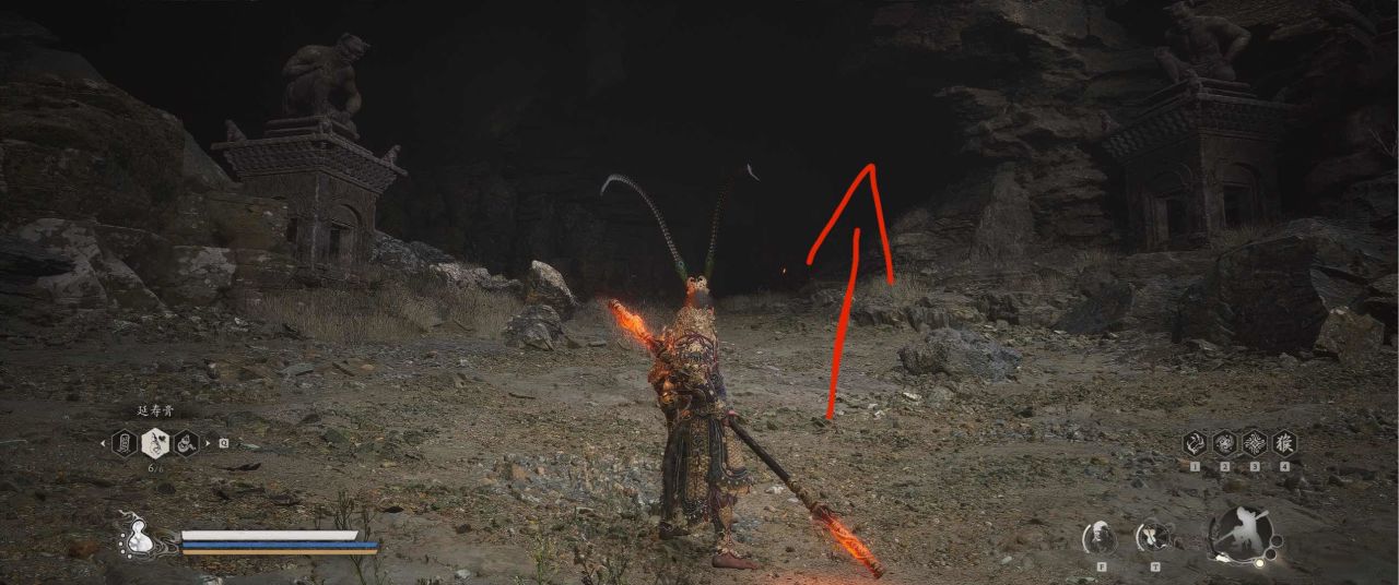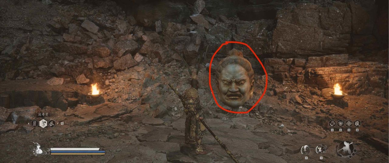 1、【黑风山】第一个传送点往前走,第一次看到那只通臂猿猴的地方,与【画圈 · 佛头】互动