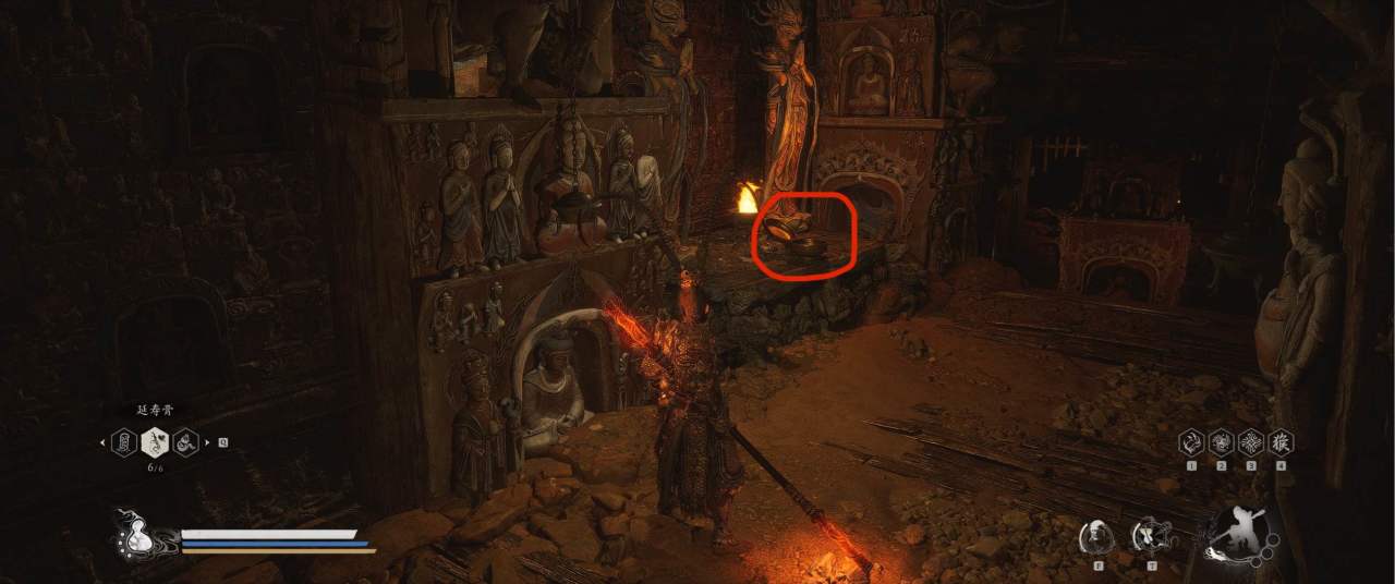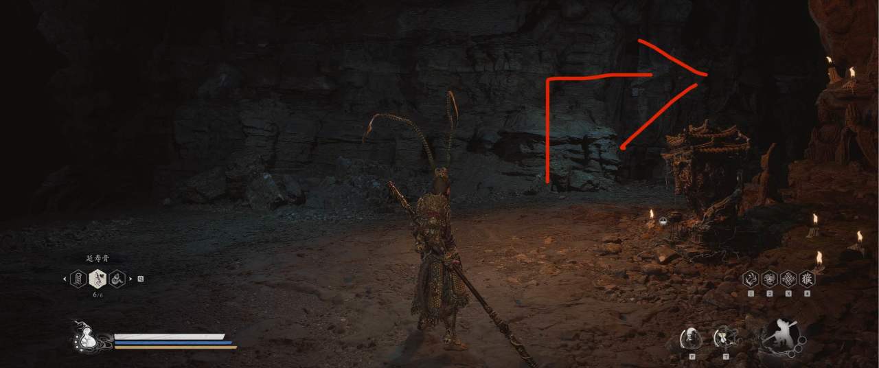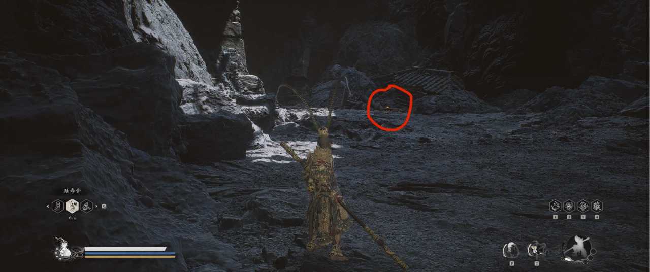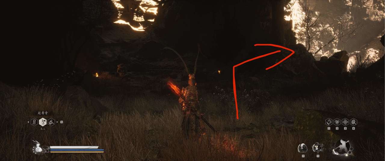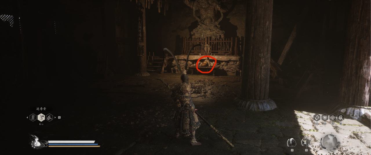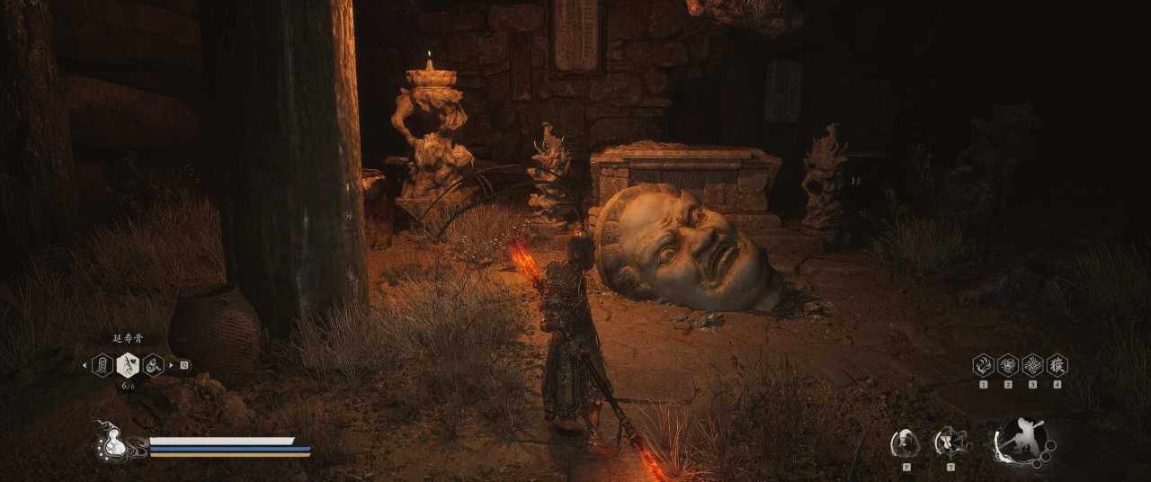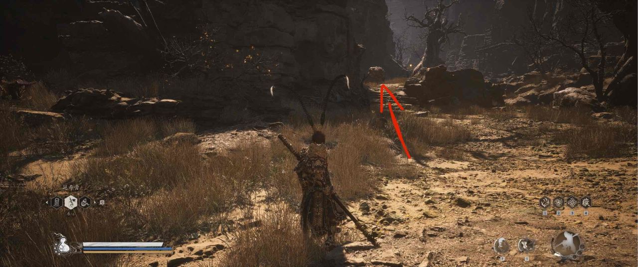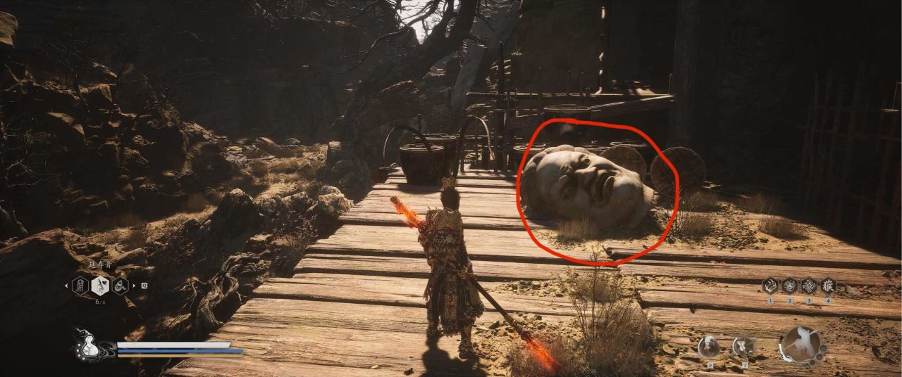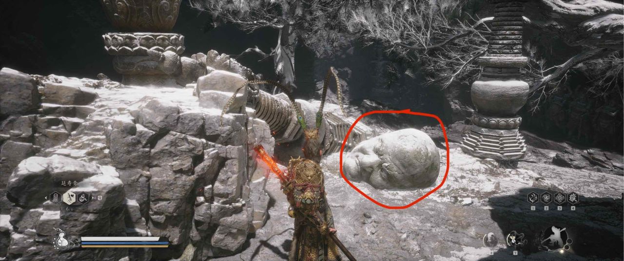 1、【黑风山】第一个传送点往前走,第一次看到那只通臂猿猴的地方,与【画圈 · 佛头】互动