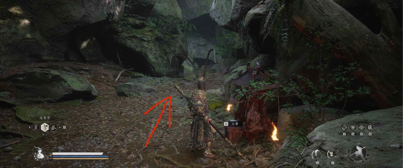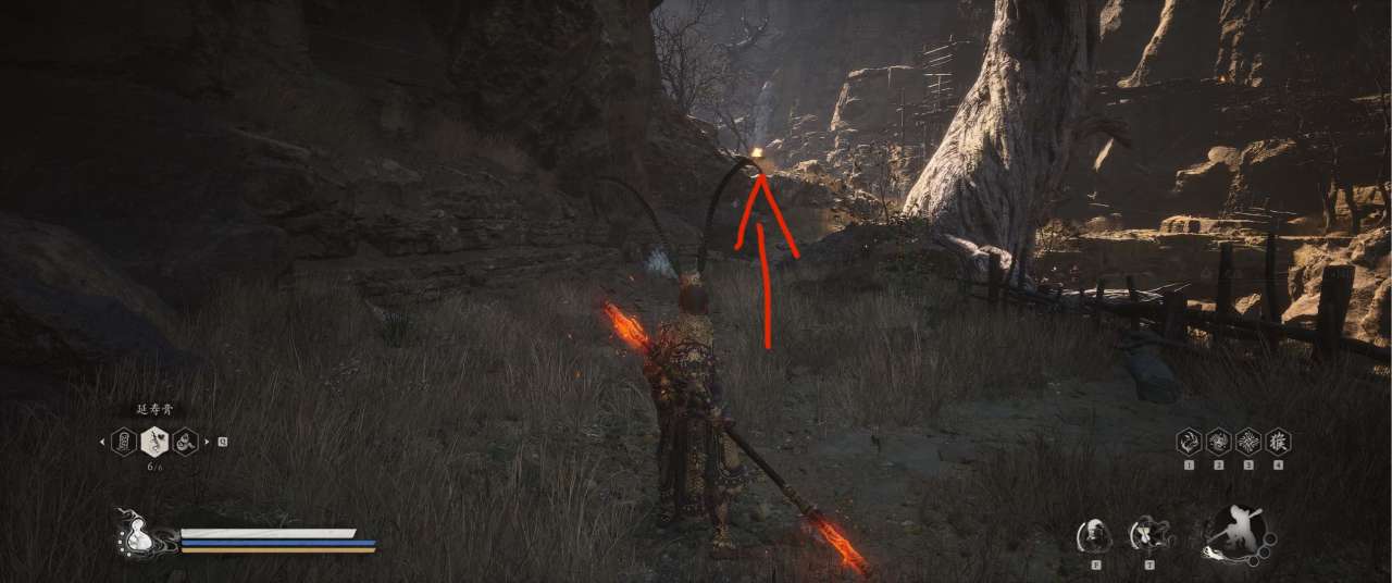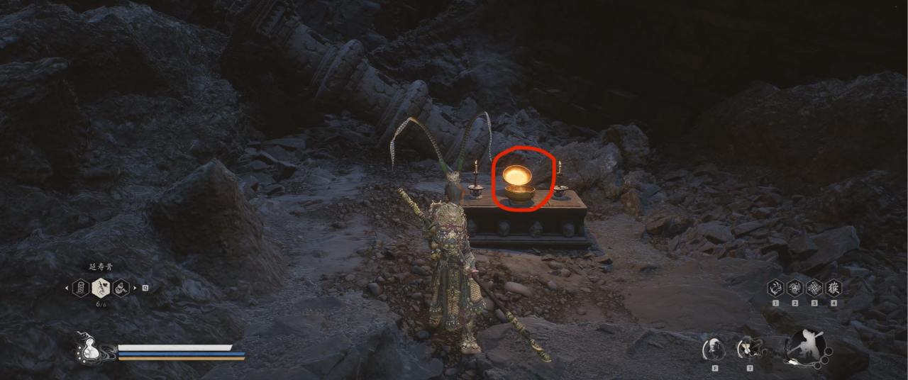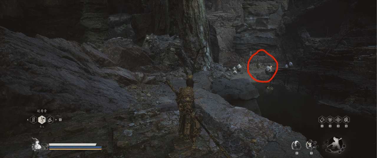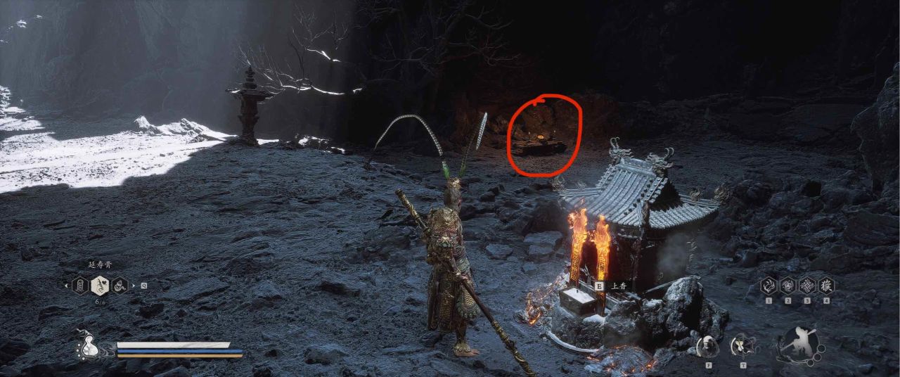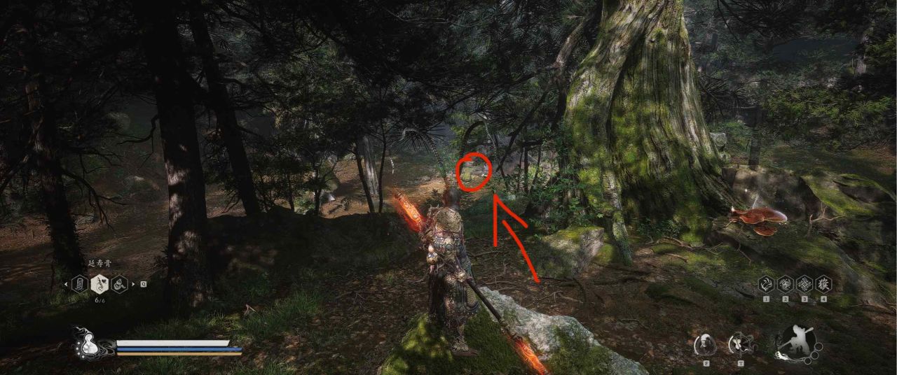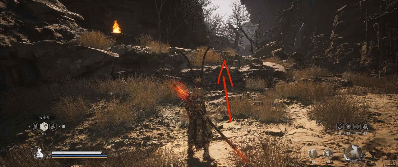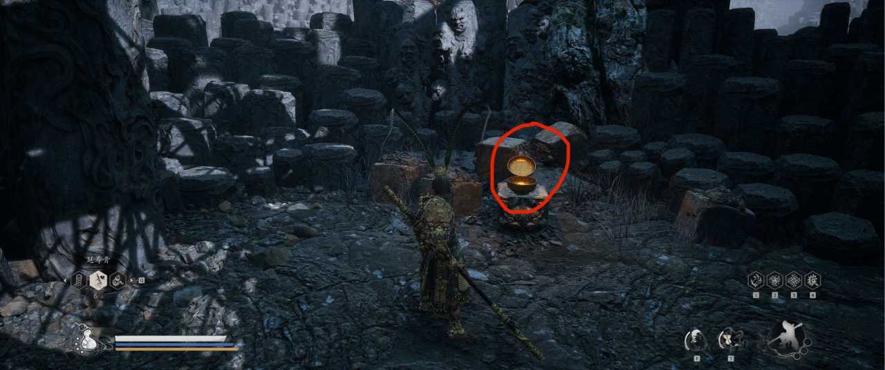 1、【黑风山】第一个传送点往前走,第一次看到那只通臂猿猴的地方,与【画圈 · 佛头】互动