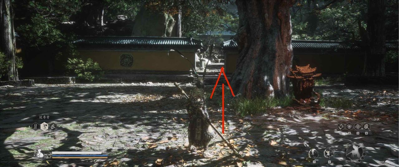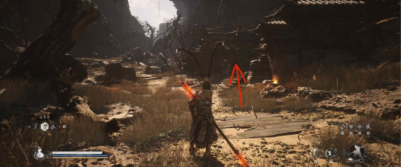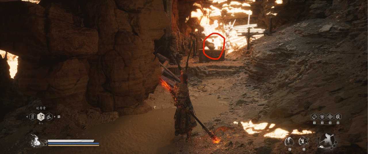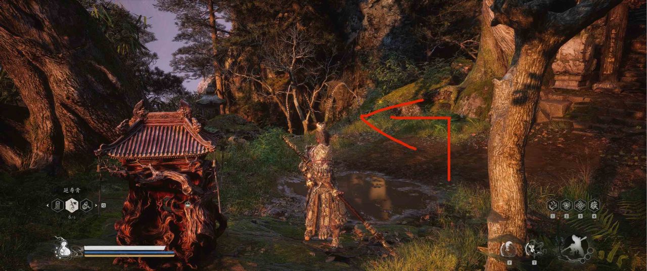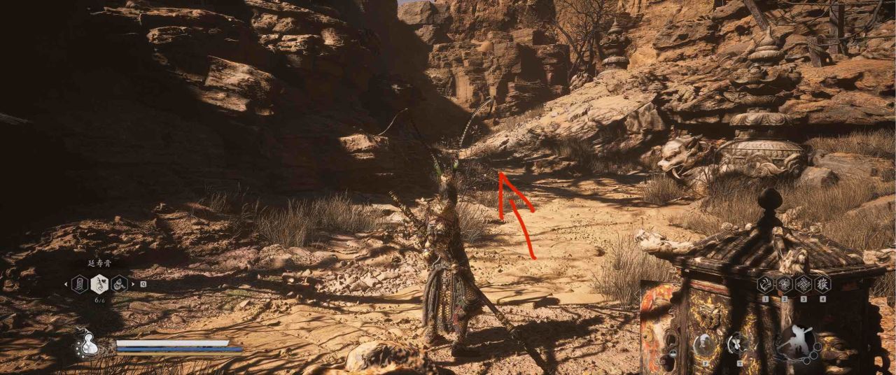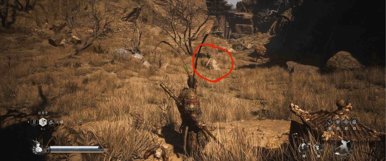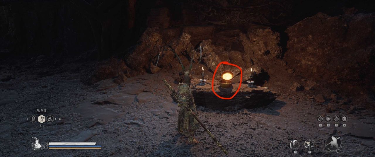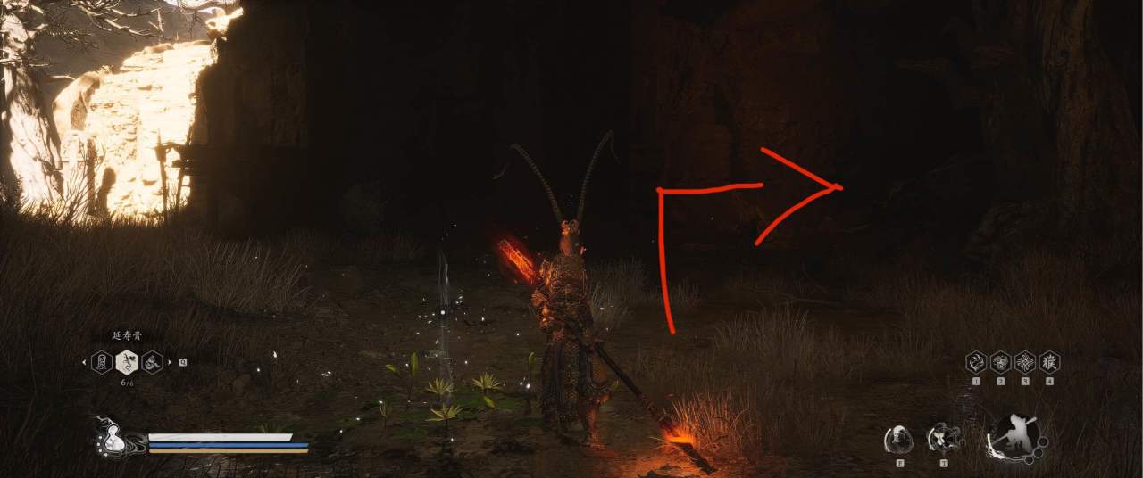 1、【黑风山】第一个传送点往前走,第一次看到那只通臂猿猴的地方,与【画圈 · 佛头】互动