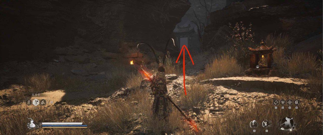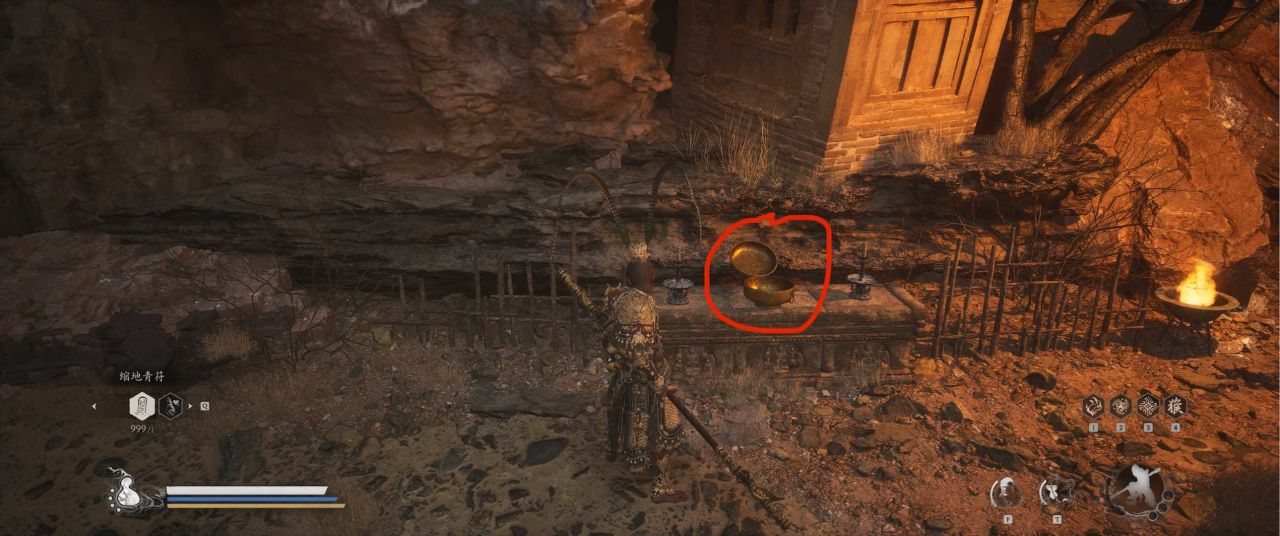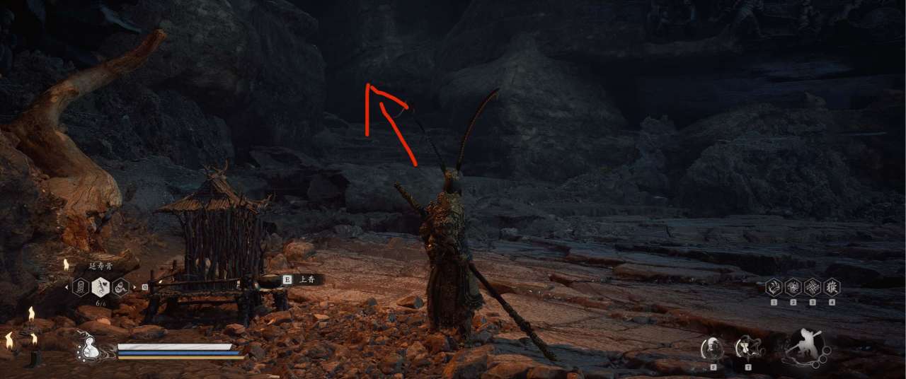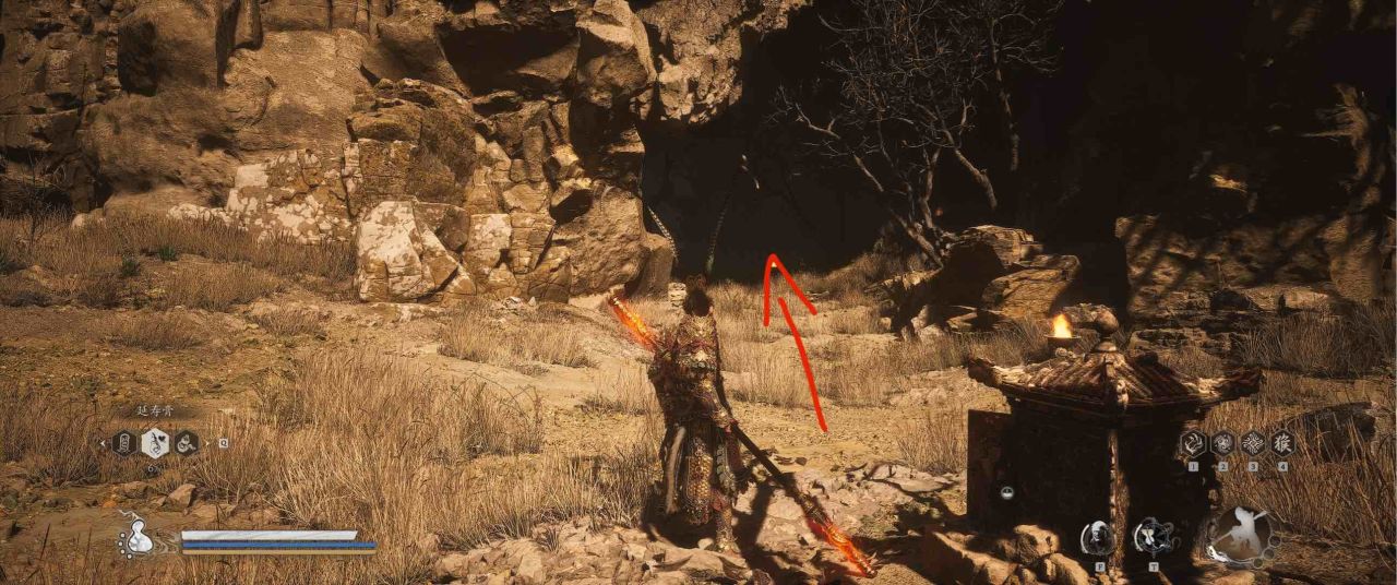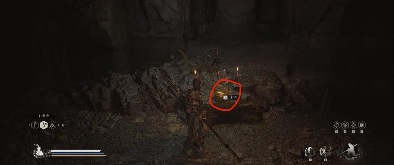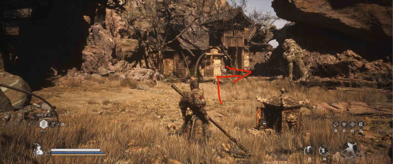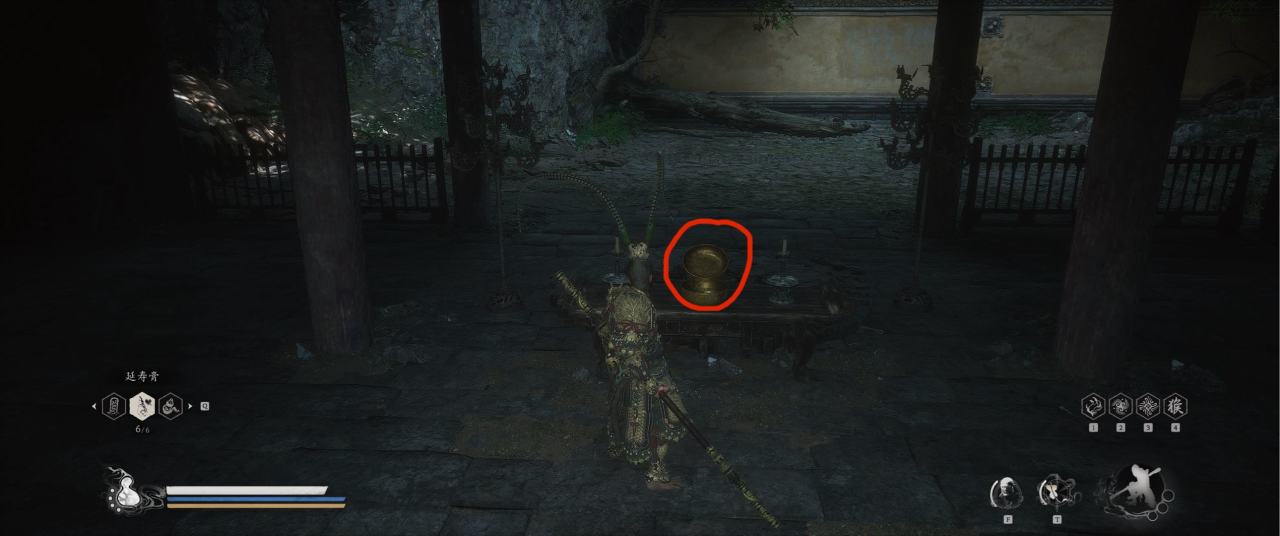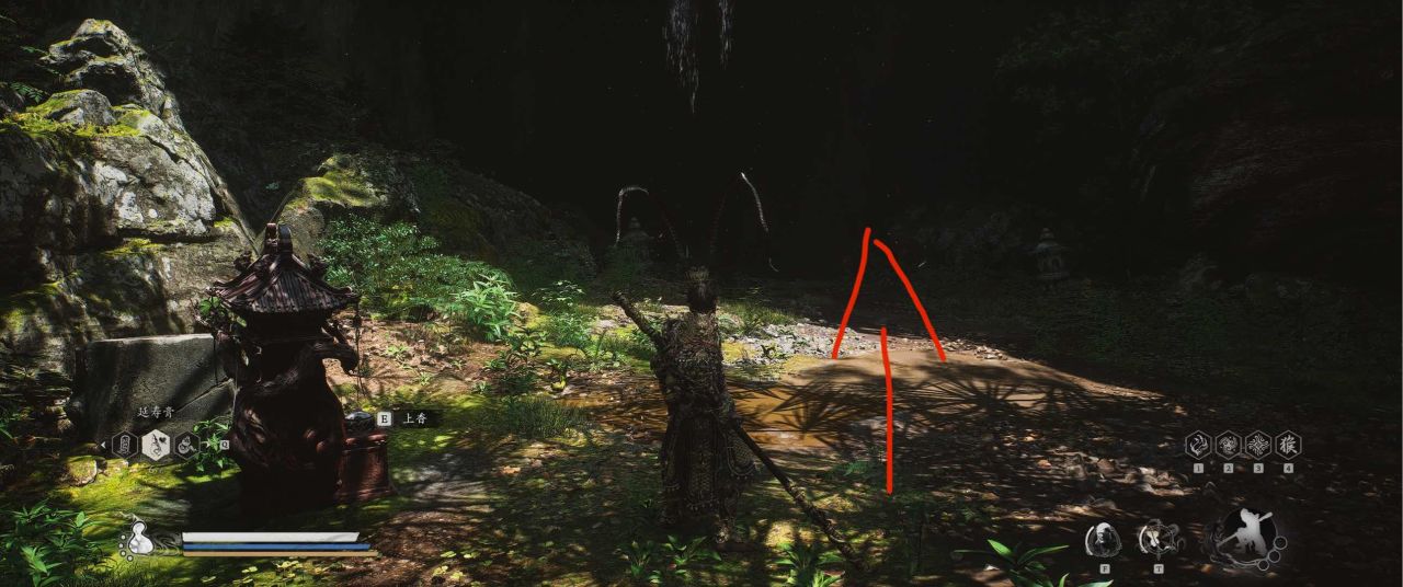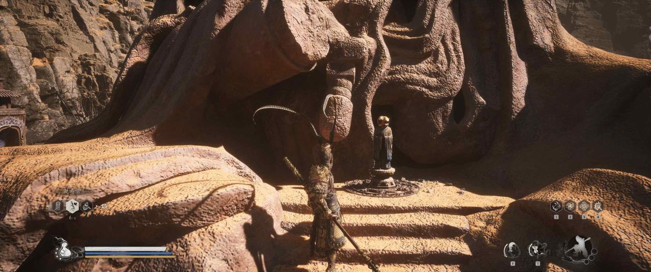 1、【黑风山】第一个传送点往前走,第一次看到那只通臂猿猴的地方,与【画圈 · 佛头】互动