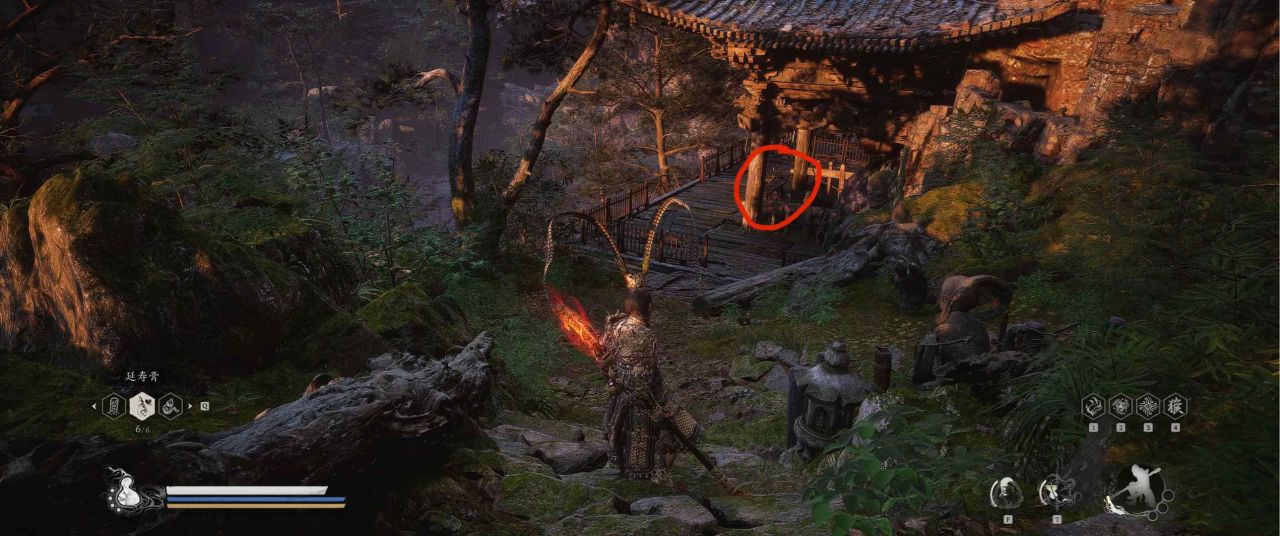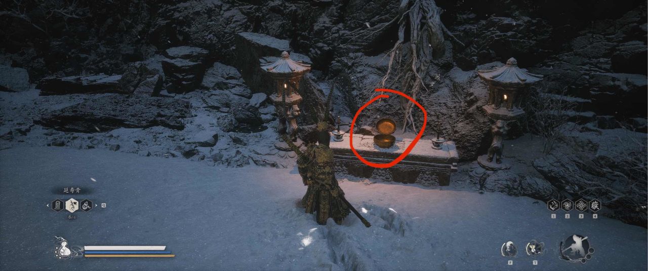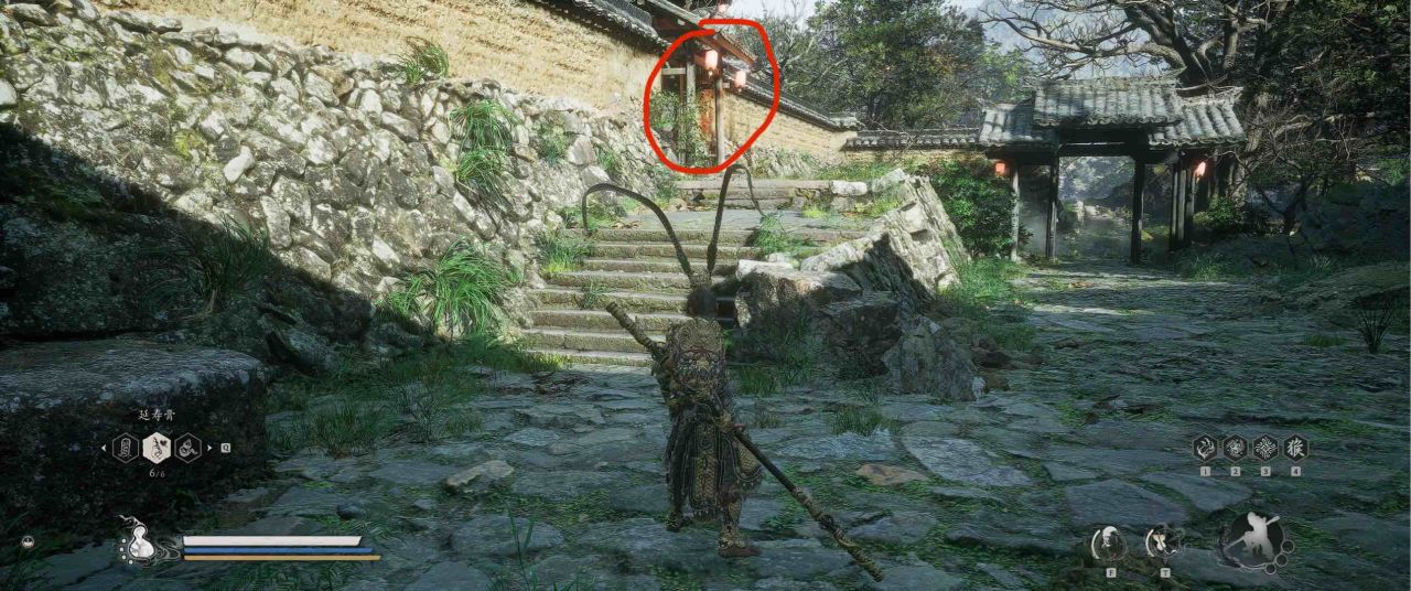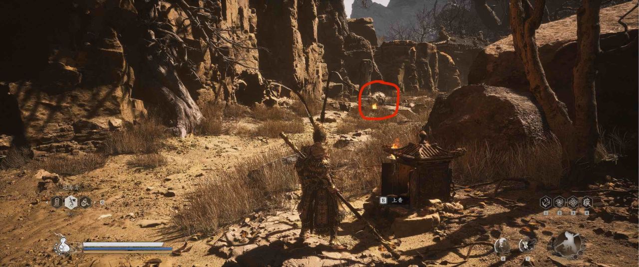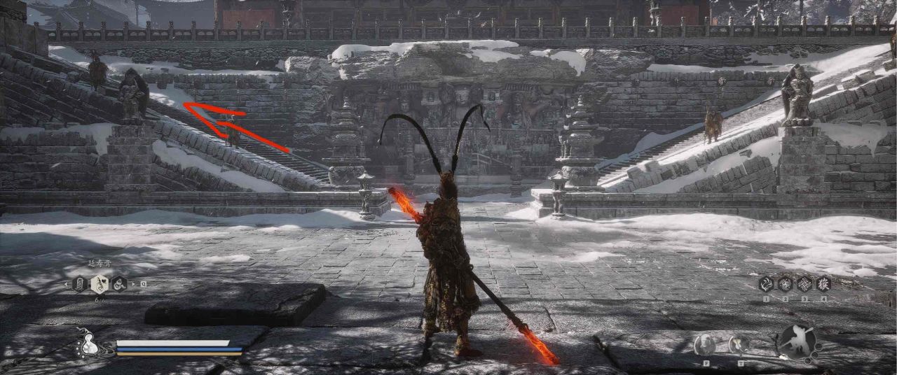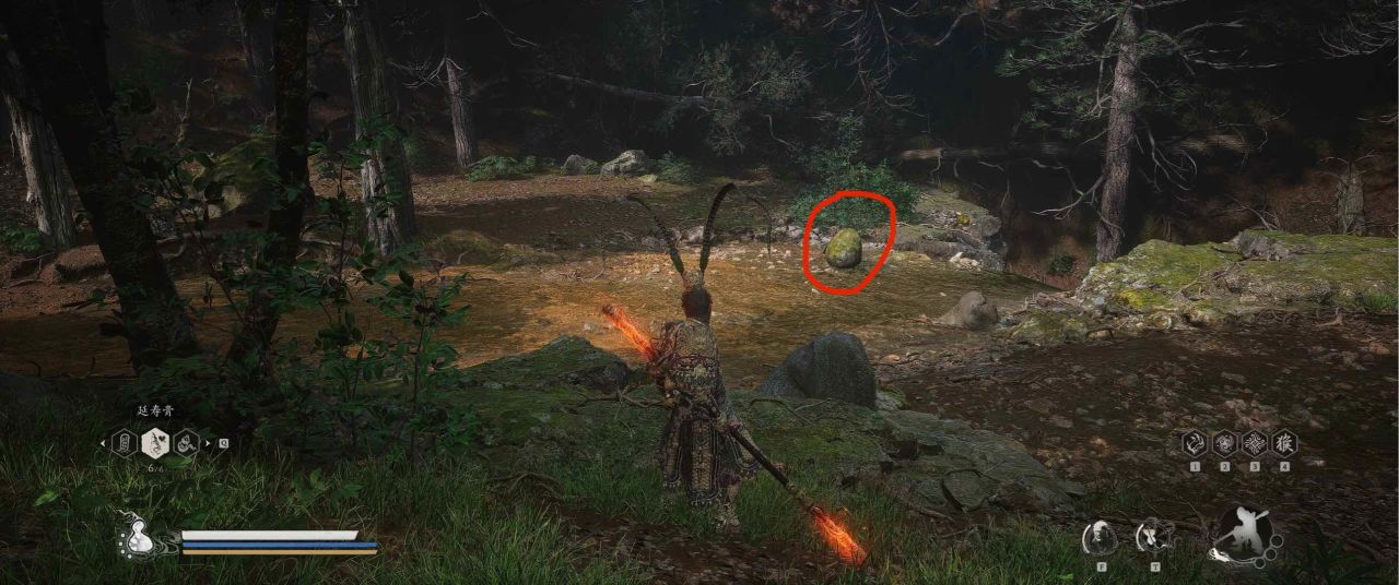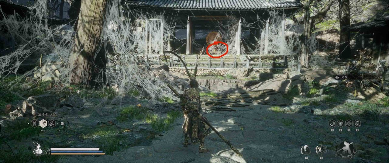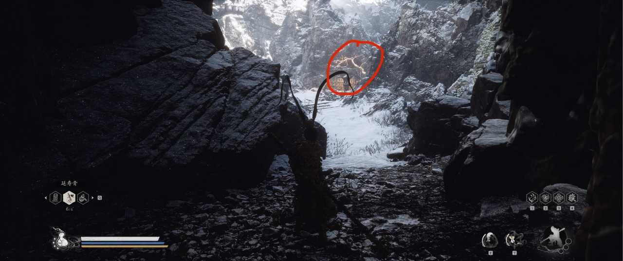 1、【黑风山】第一个传送点往前走,第一次看到那只通臂猿猴的地方,与【画圈 · 佛头】互动