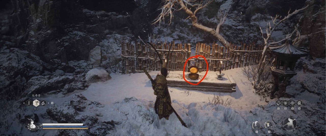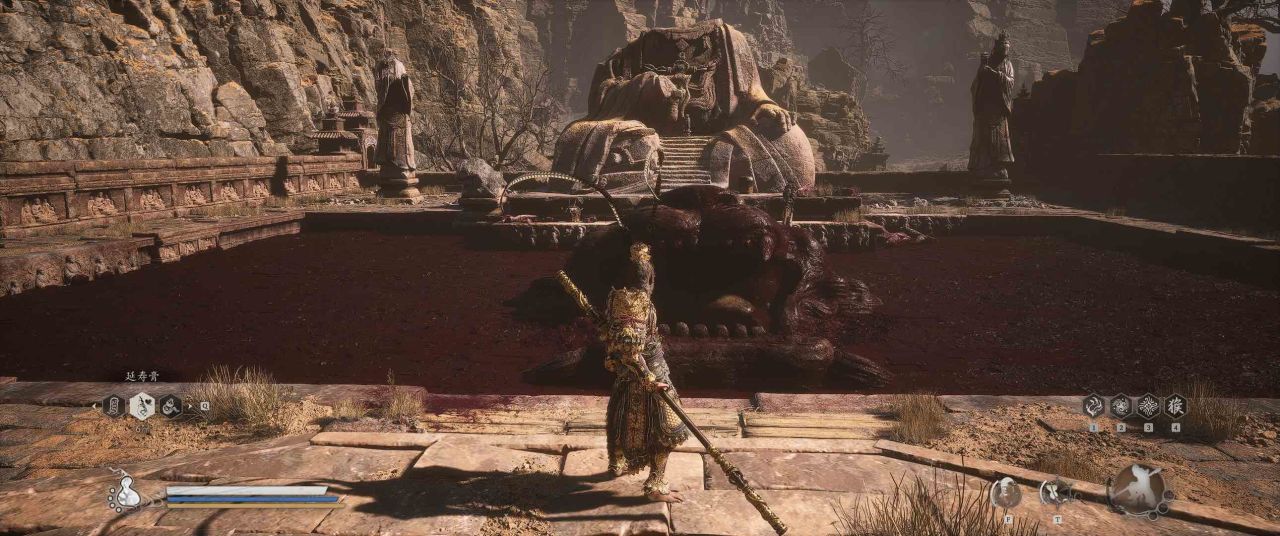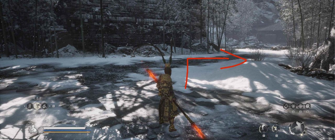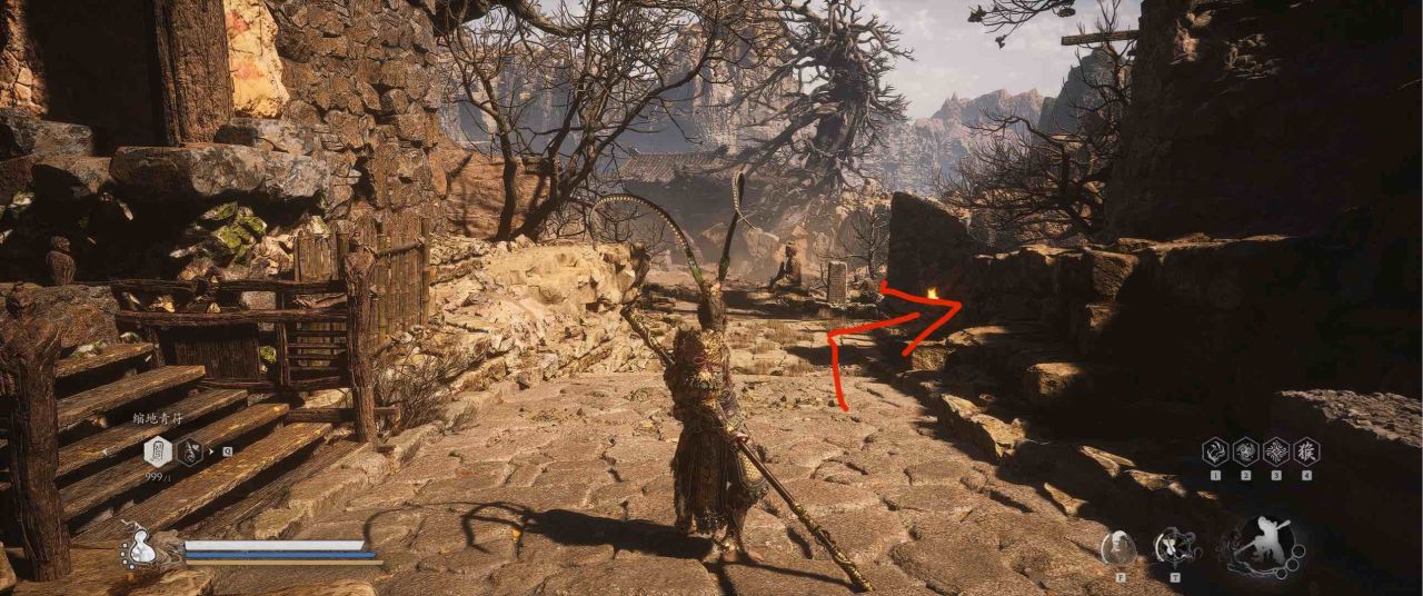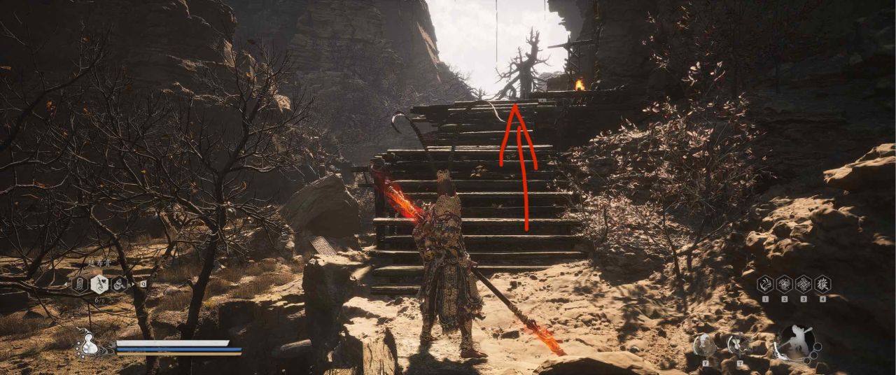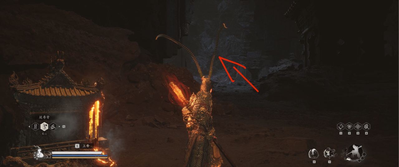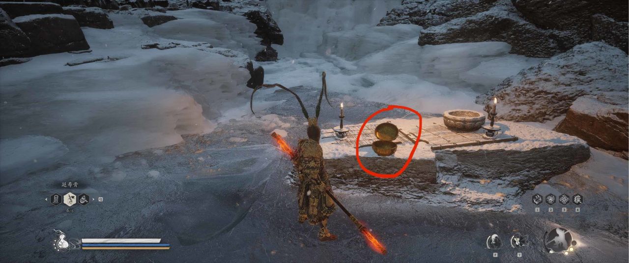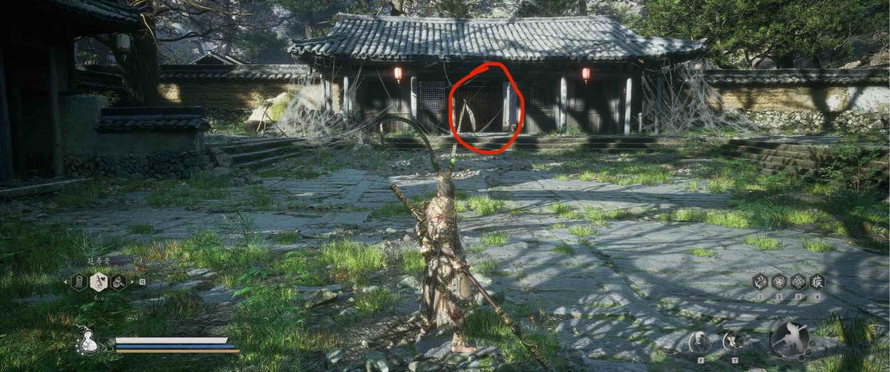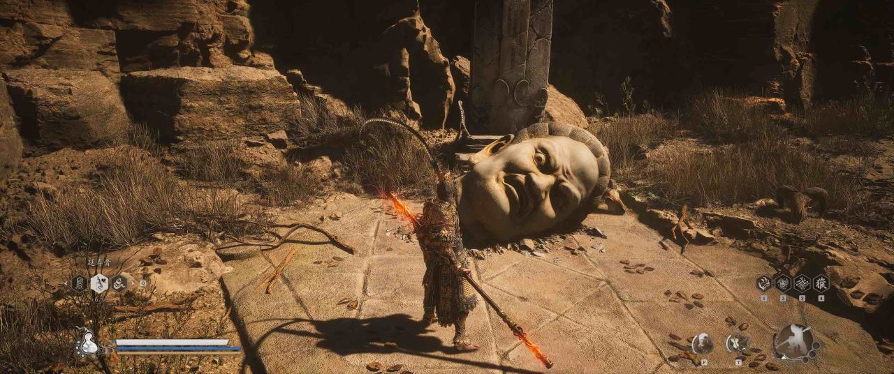 1、【黑风山】第一个传送点往前走,第一次看到那只通臂猿猴的地方,与【画圈 · 佛头】互动