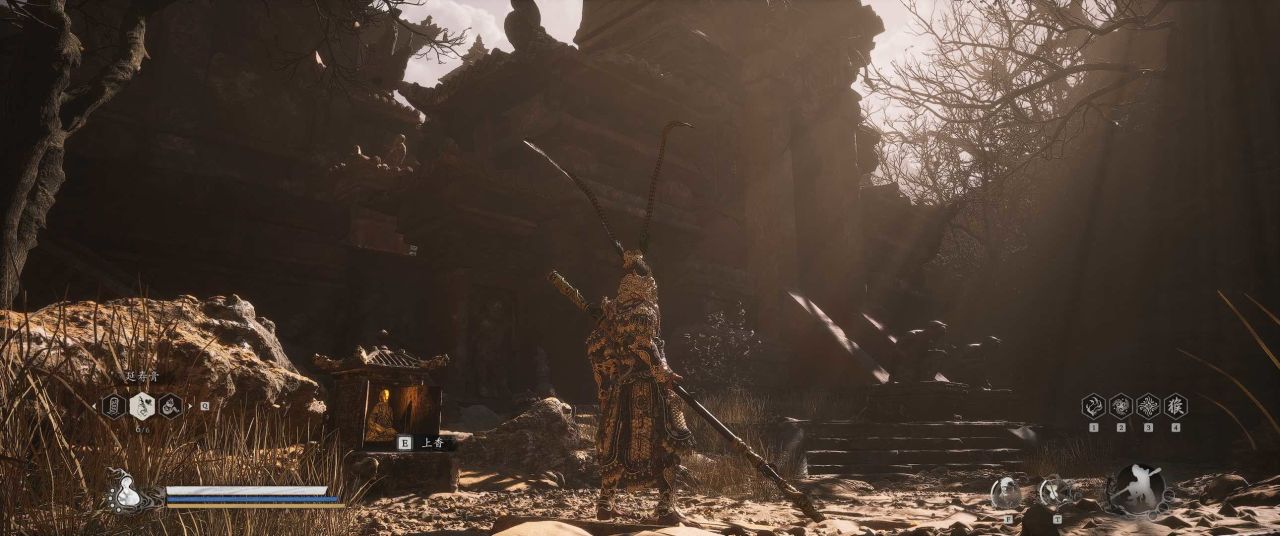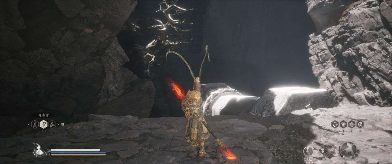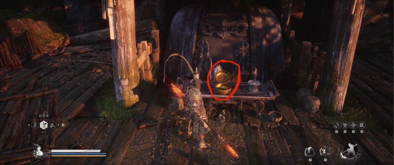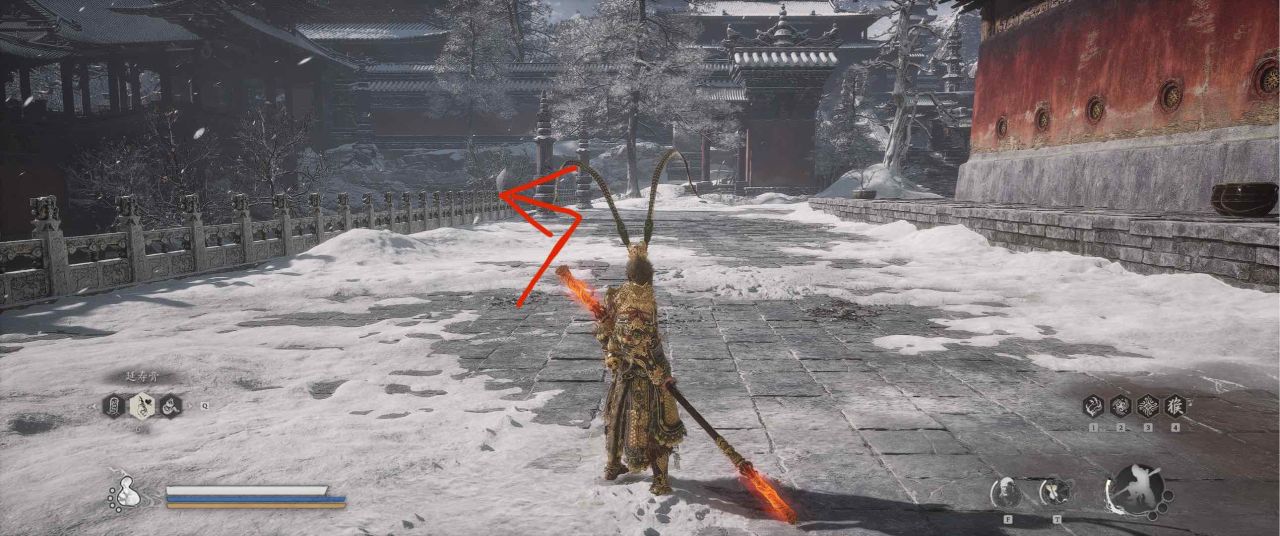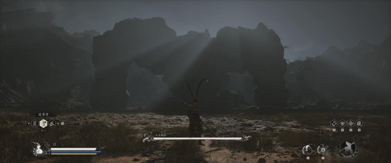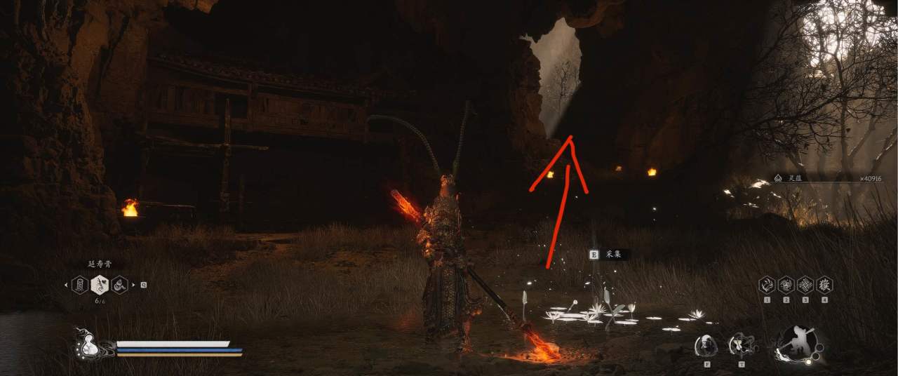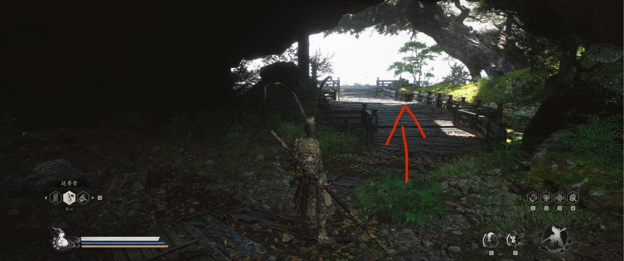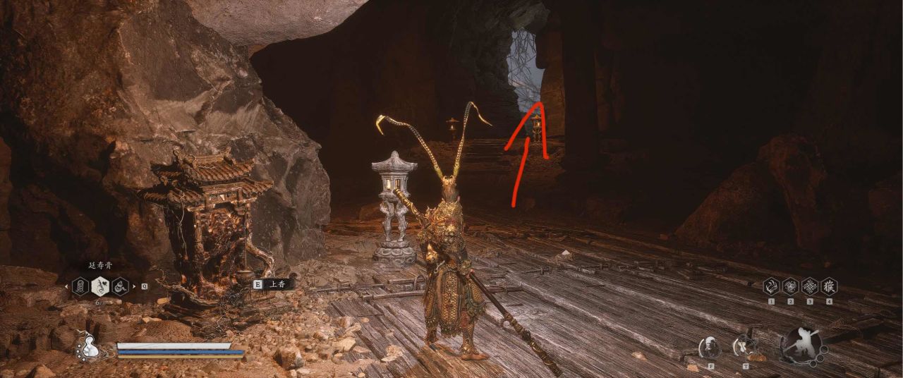 1、【黑风山】第一个传送点往前走,第一次看到那只通臂猿猴的地方,与【画圈 · 佛头】互动