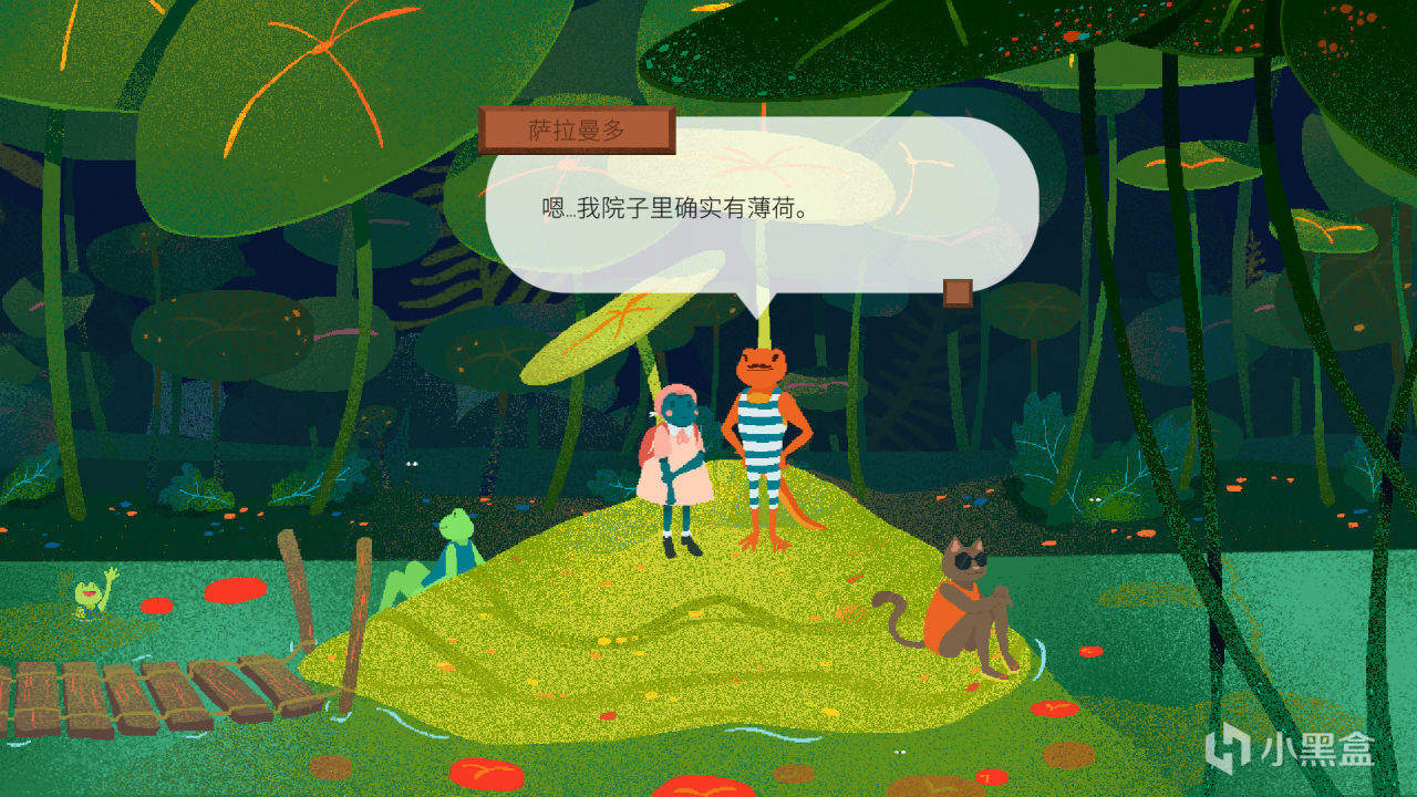 是一款短小精致的剧情冒险游戏,你可以从中体验非线性的探索流程,帮助害羞又可爱的小青蛙寻找茶话会必需的食材!很可爱的绘本风,操作无难度,谜题简单,走步速度太慢了,别的没有缺点。