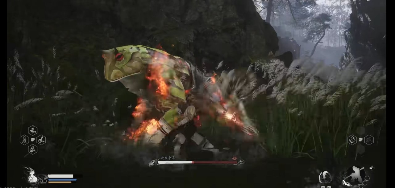 有许多人都是打了广谋才去打的这只大蛤蟆,但其实先打了这只boss再打广谋才是最优解,这样就不需要再回来探路了,至于问怎么打,呃,躲掉大攻击硬着头打下去都行,因为这只蛤蟆伤害不高,攻击前摇大,躲过了伤害大的攻击后其余的伤害只能说微乎其微,当然也能绕圈蓄力来打,总之就是很好大的意思了。