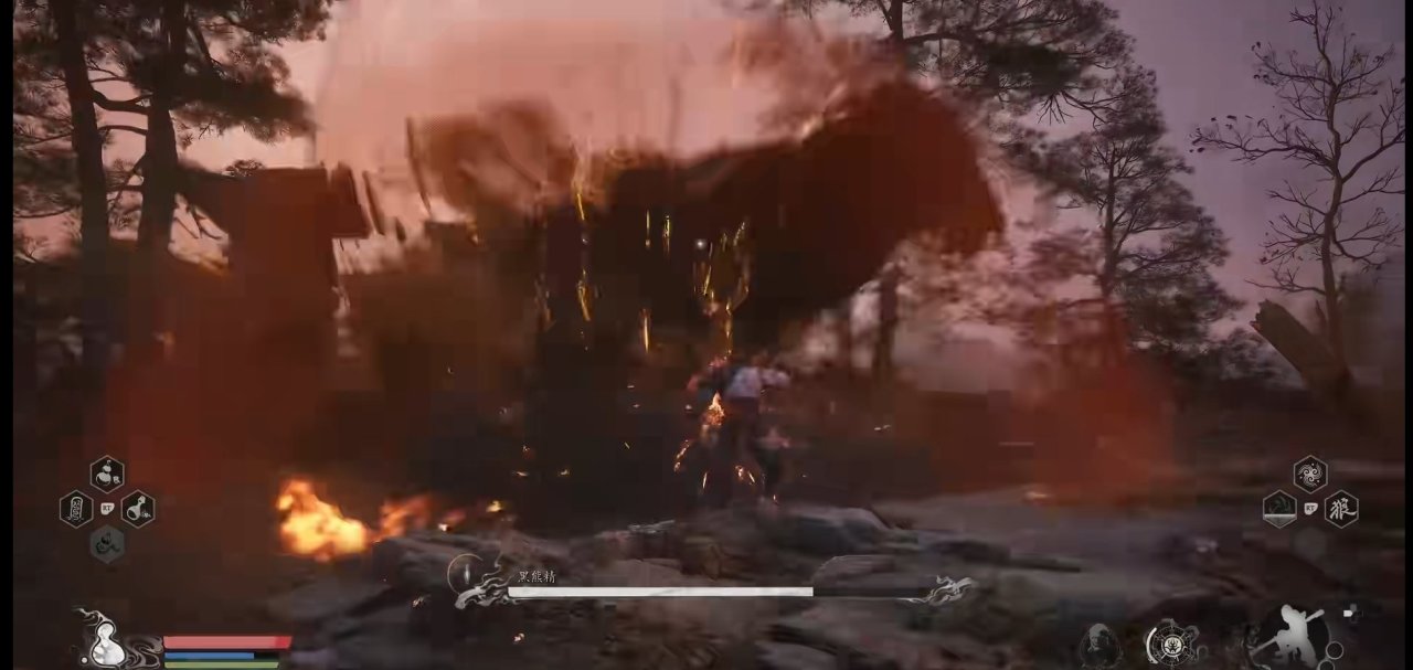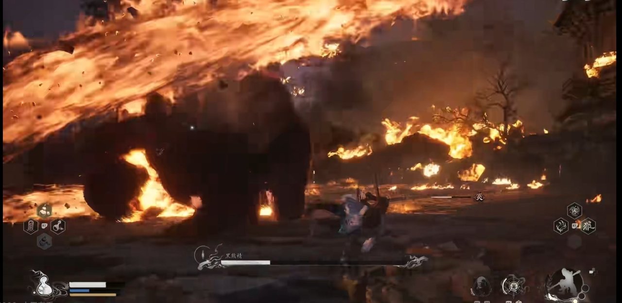黑风大王的妖形态,也是第一回的最后BOSS,还好不是和白衣秀士那样两个形态一起打,所以还不算难打,不过在残血的时候黑熊精会附有火属性攻击,还请小心,不过这个BOSS的攻击前摇大,一般来说死了几次熟悉攻击之后就能过了,实在打不过就用绕打法吧,慢慢耗也能耗死他。