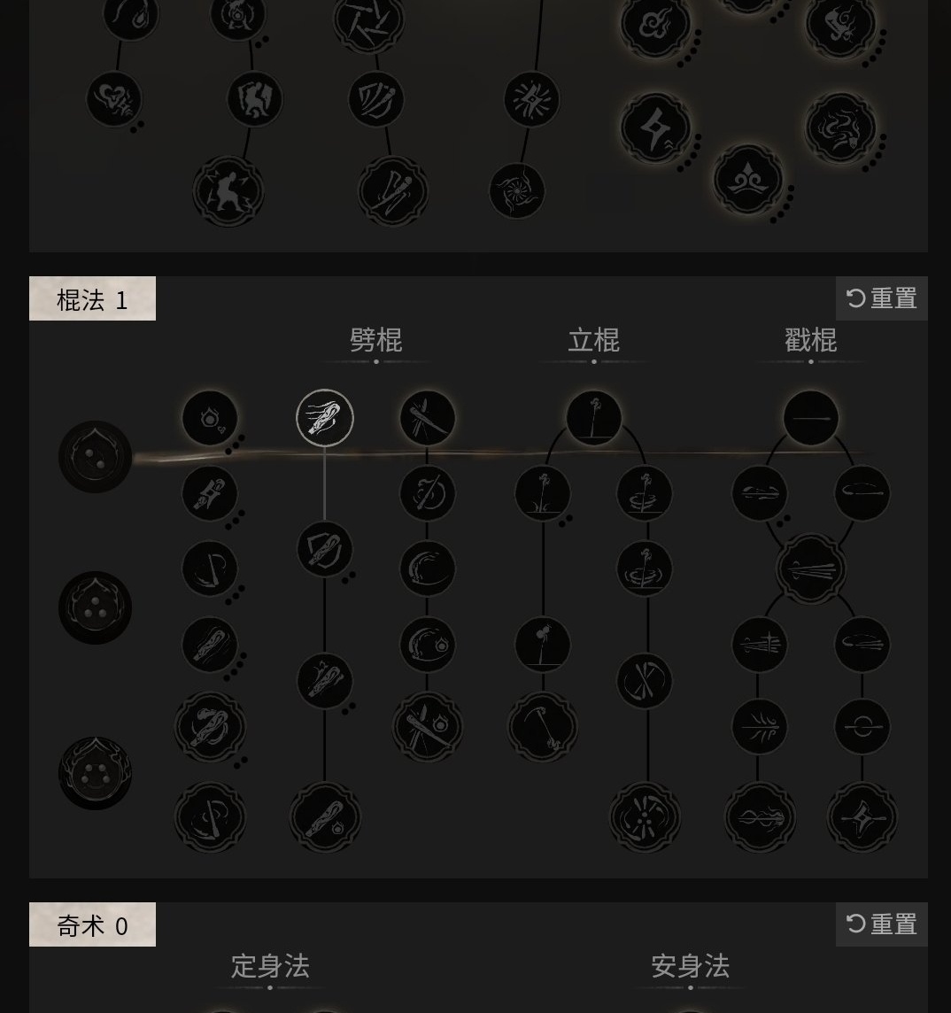 还有加点方面,前期的点可以看需求加,不需要太在意,然后关于劈棍和立棍用法,前期主要就是这两种棍法,不过更推荐劈棍,除非你熟练这些棍法可以轻松自如的变换来打,要不然不会用的只能用立棍还在立棍子的时候就被怪给打断了,而劈棍则是瞬发劈下去,这里不是说哪种棍法更好,只是说不熟练的新手推荐用劈棍而已。