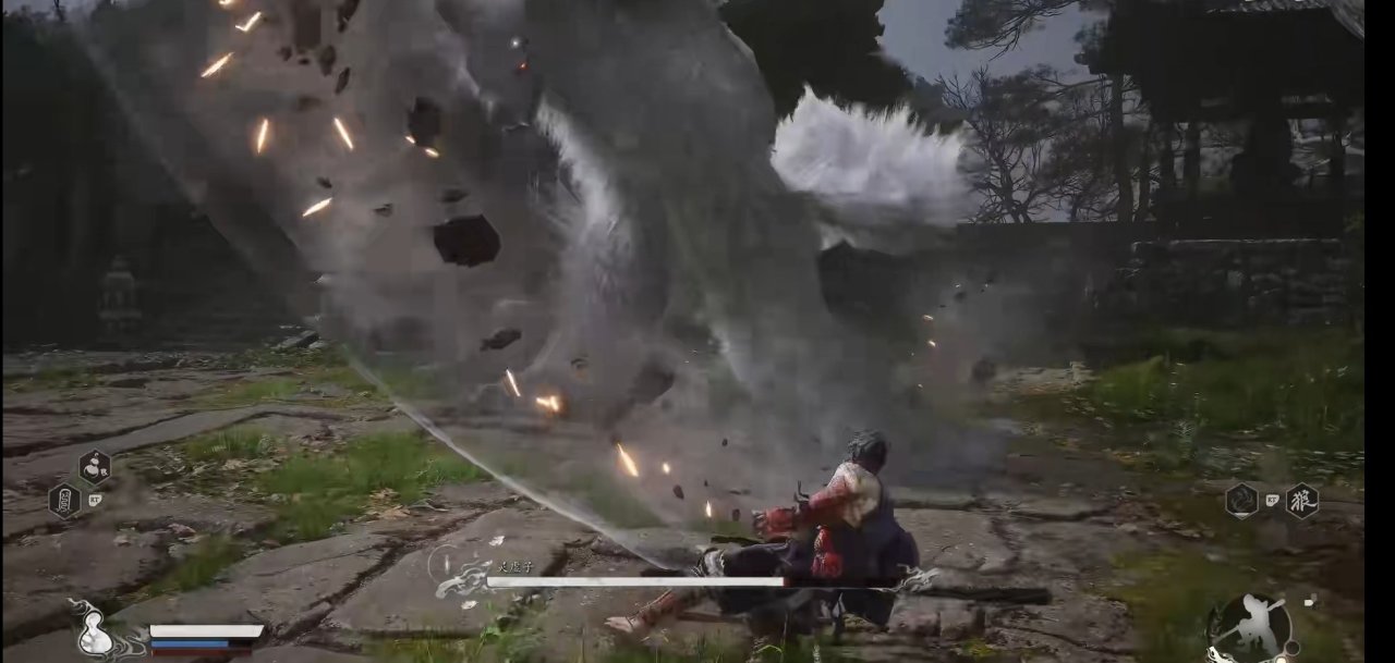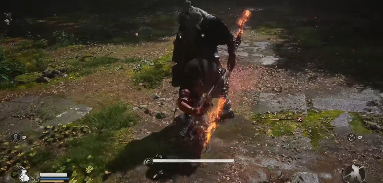这个算是要第二打的boss,比第一个牯护院要难打许多,但前期因为能用的手段少,只能靠躲攻击和定身术来打,还有等广智每次的冲刺之后,会留一段空隙,也可以趁那个时候来打,相对来说这个没有太多花里胡哨的手段,可以慢慢来,死个几次了解了攻击机制之后就行。