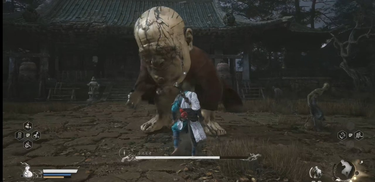 这个BOSS需要在打广智,广谋,还有白衣秀士的地方,找到三口大钟,然后都敲响之后才能触发,他的攻击机制和幽魂差不多,但是强度可比幽魂要弱上一些,当然我本人还是用的绕打法,看见别的up直接猛刚打过的,各位的容错要是低的话,也可以试试,在打金池之前还请打造一下新装备,能更轻松的过关,这玩意就是靠扫,蹬,踢,三种招数,适当拉远距离就好了,还有这金池长老的地图内还有个机制,就是你打他的弟子会给你回血,也就是说周围就有源源不断的自动血瓶,我还是死了两三次才知道的事(ᇂ_ᇂ|||)。