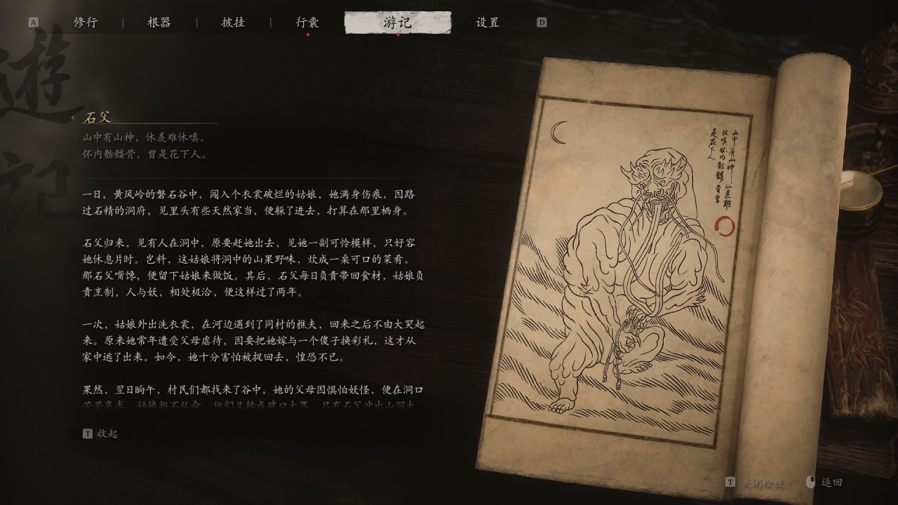 石父歸來,見有人在洞中,原要趕她出去,見她一副可憐模樣,只好容她休息片時。豈料,這姑娘將洞中的山果野味,炊成一桌可口的菜餚。那石父嘴饞,便留下姑娘來做飯。其後,石父每日負責帶回食材,姑娘負責烹製,人與妖,相處極洽,便這樣過了兩年。
