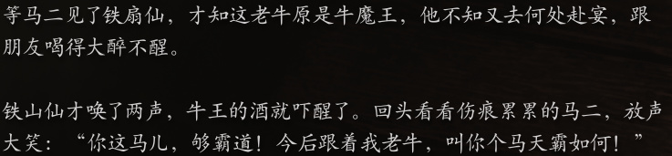 牛魔王因戰大聖有功,從西方返回,並直接把六根隱藏在胃部不讓他人沾染,後身體萎靡不振。