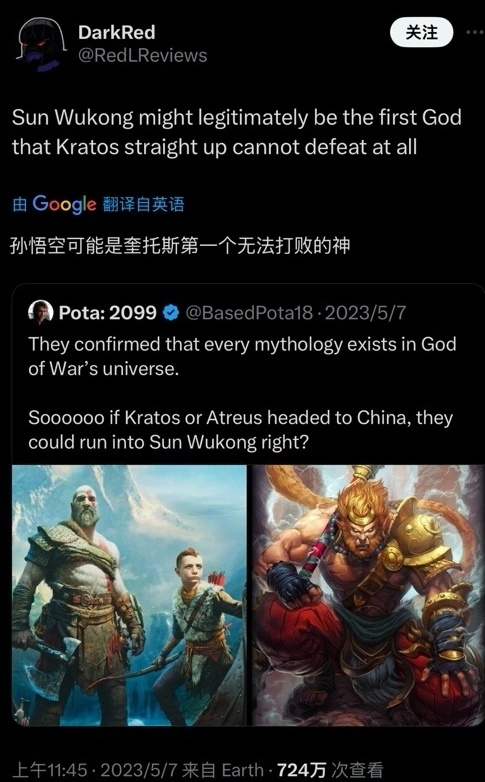 不是一个世界观对比没有意义,因为拿不同世界观对比,完全可以创造一个在新世界观里毁天灭地无所不能的神,都是人造产物,不在同一世界观下没法对比