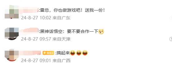 評論區中,Redmi品牌總經理王騰發文表示:“雷總我可以幫忙開箱”。此外,還有不少網友呼籲小米與《黑神話:悟空》的聯名。