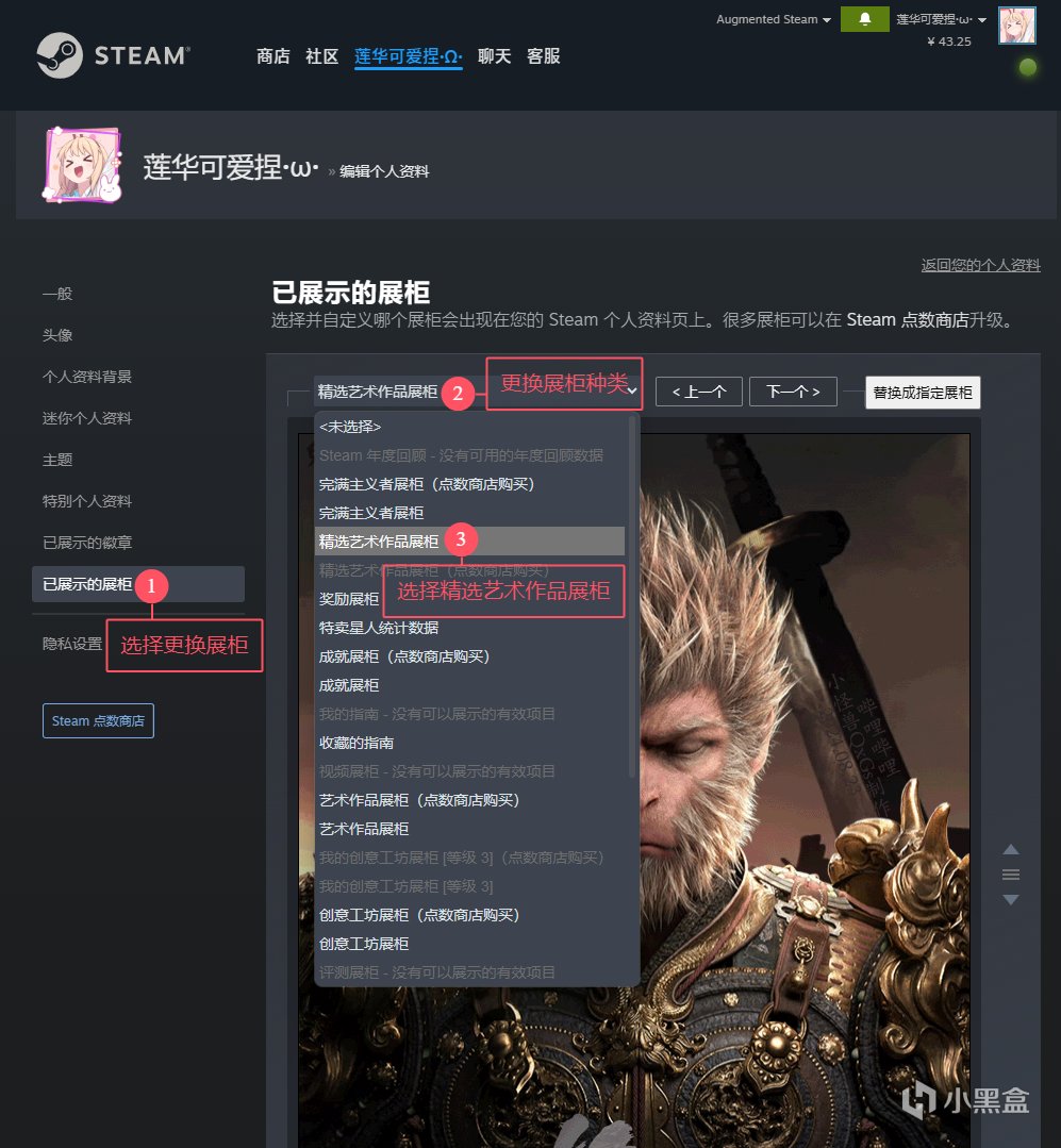 七、選擇 精選藝術作品展櫃 裝備上傳的藝術作品,不要選擇 藝術作品展櫃,這兩個不一樣!!