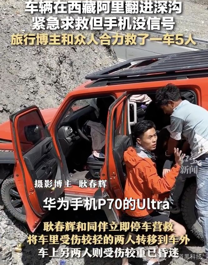 比如有人在西藏旅遊,通過華爲Pura 70 ultra的衛星通話,和衆人合力救了一車5人就是真實的寫照。