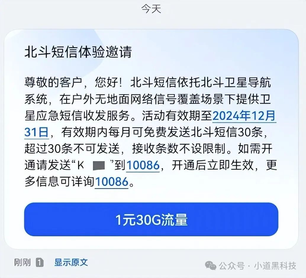 更重要的是,已經有用戶收到移動的北斗短信體驗邀請了,