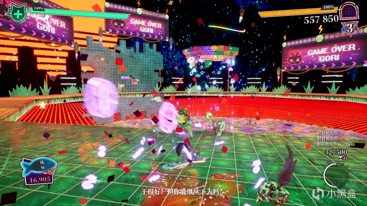 因为一般玩家可能长时间游玩,也会在长时间高强度的色彩刺激下出现一定程度的不适,不过如果你可以适应这种风格也喜欢Angry Demon Studio一贯以来的鞋垫猎奇,那么《哥里:可爱大灭绝》可以带来十分爽快的砍杀跑酷冒险体验,还是十分值得推荐。