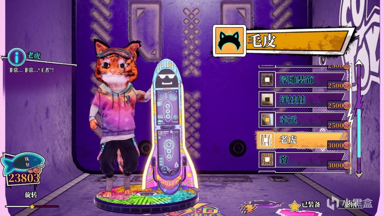 答案是可以解锁哥里的各种装饰品——从猫毛、眼睛等本身的体态到穿的服装,再到滑板甚至是防御盾、导弹等内容的外观,只要有钱你都可以自由的DIY,以及:哥里近距离观察是真的很有furryfurry的质感!