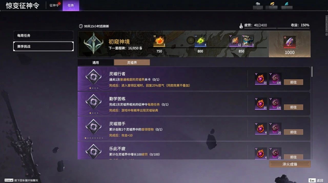 同時還有關於靈虛界的相關任務,以及更新的新的賽季挑戰任務。