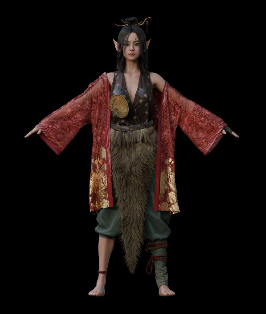 DRAYQ(@drayqin):"2024 年最佳遊戲 - 《黑神話:悟空》! 狐女萍萍的模型是從遊戲中提取出來的。我不會分享該模型。這只是一篇同人作品。"