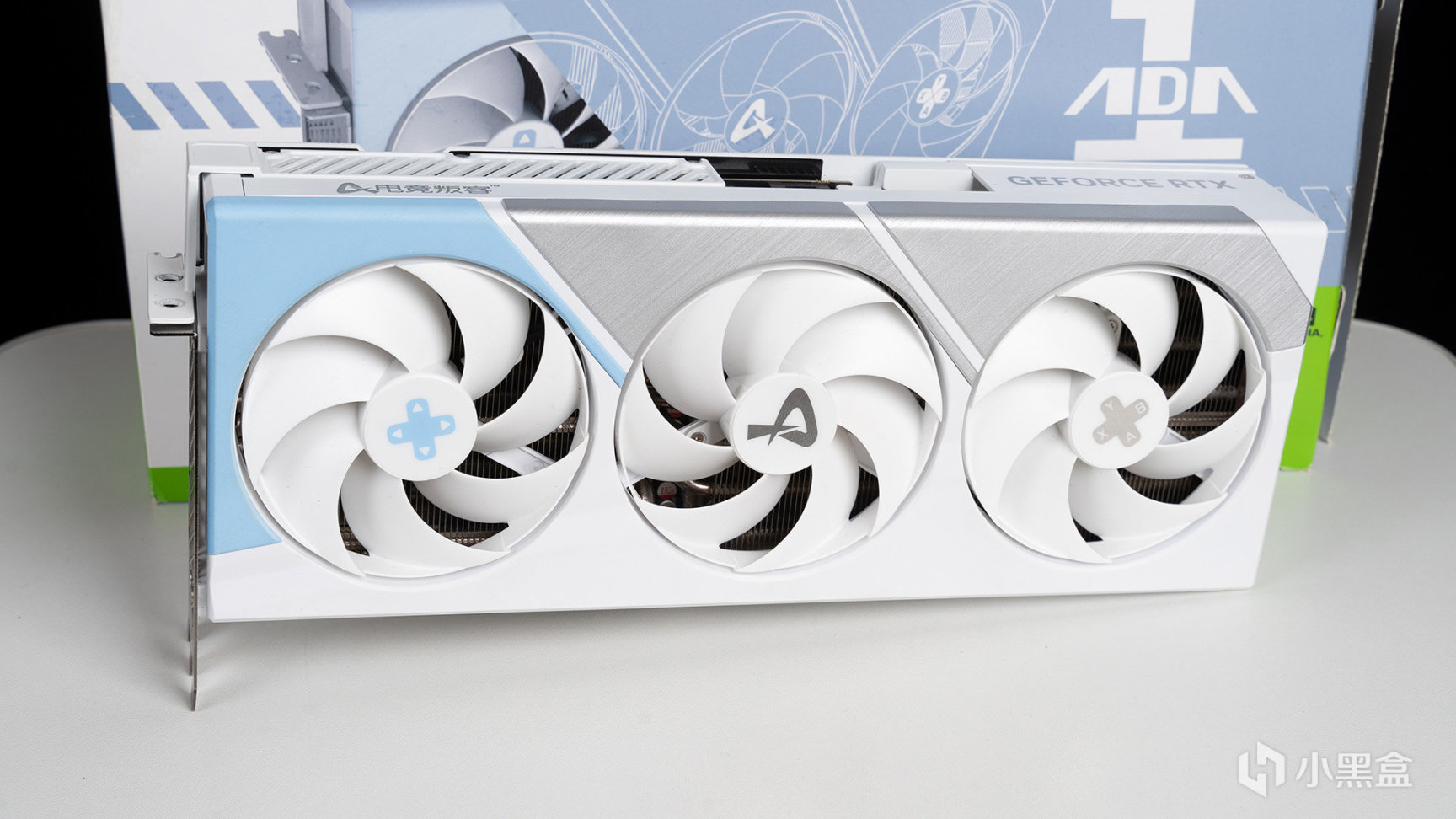 虽说主打性价比,RTX4090 X3W外观设计一点都不丐,整体采用纯白配色,导流罩上带一抹蓝和部分拉丝效果撞色处理,方方正正的轮廓和简洁的白色也相称,正面是三枚9叶圆环轴流风扇,显卡整体长度达到337mm三槽厚度,这种规格且算是比较迷你的非公RTX 4090了。