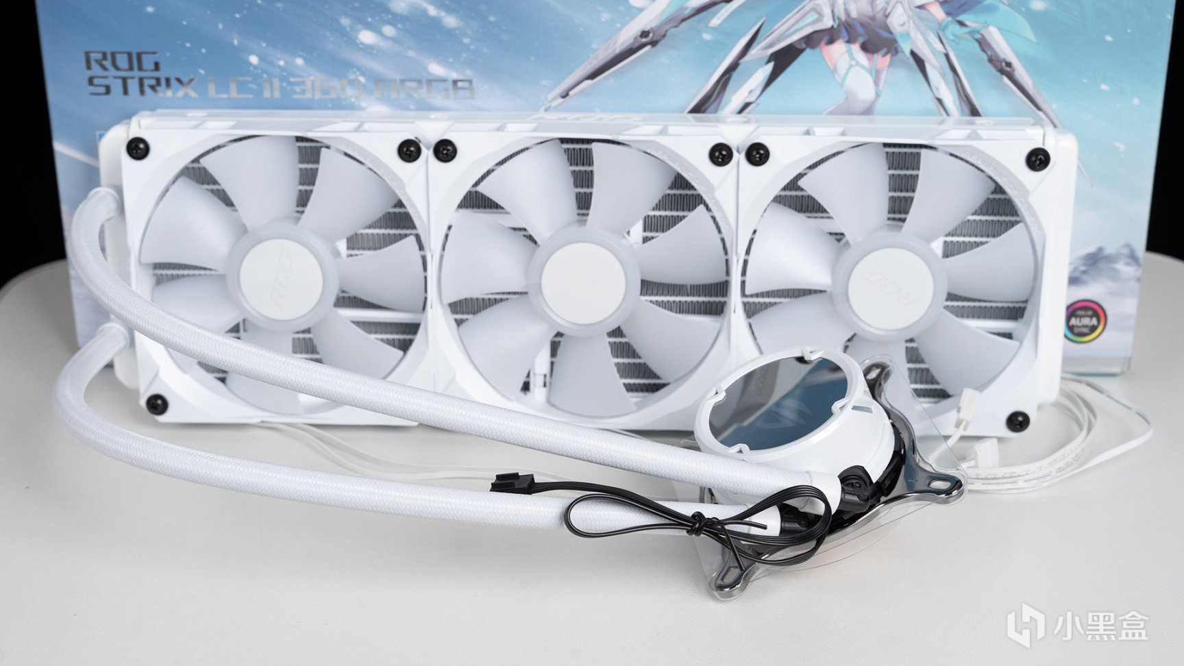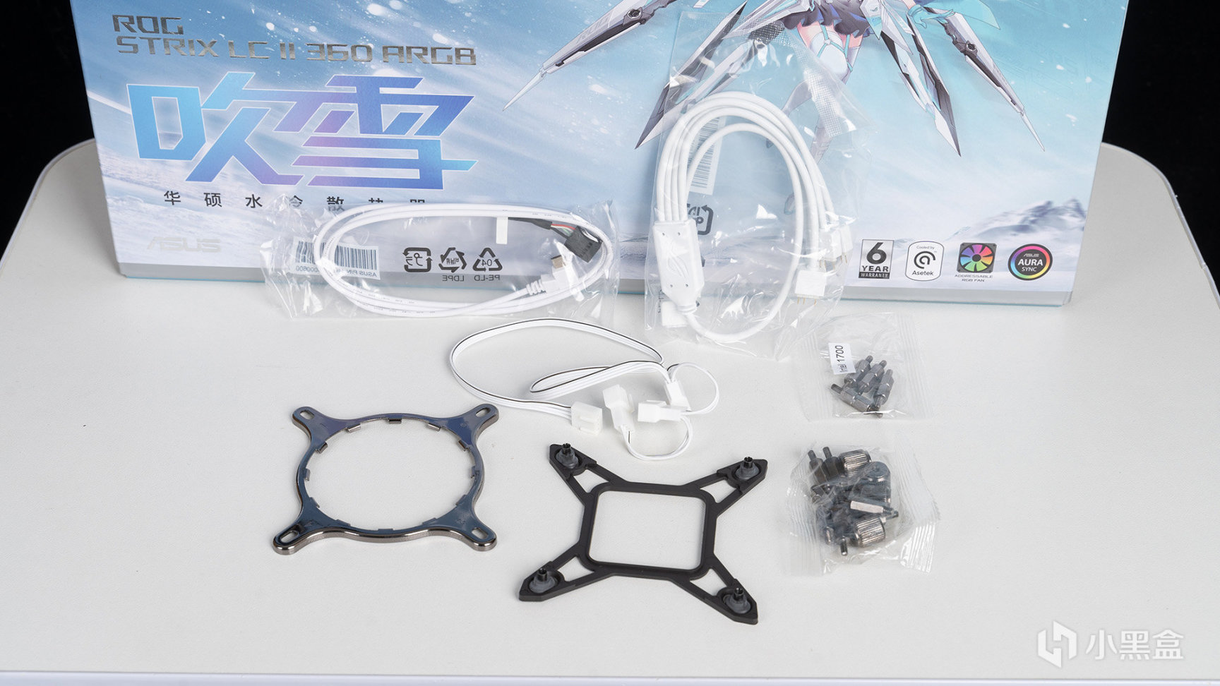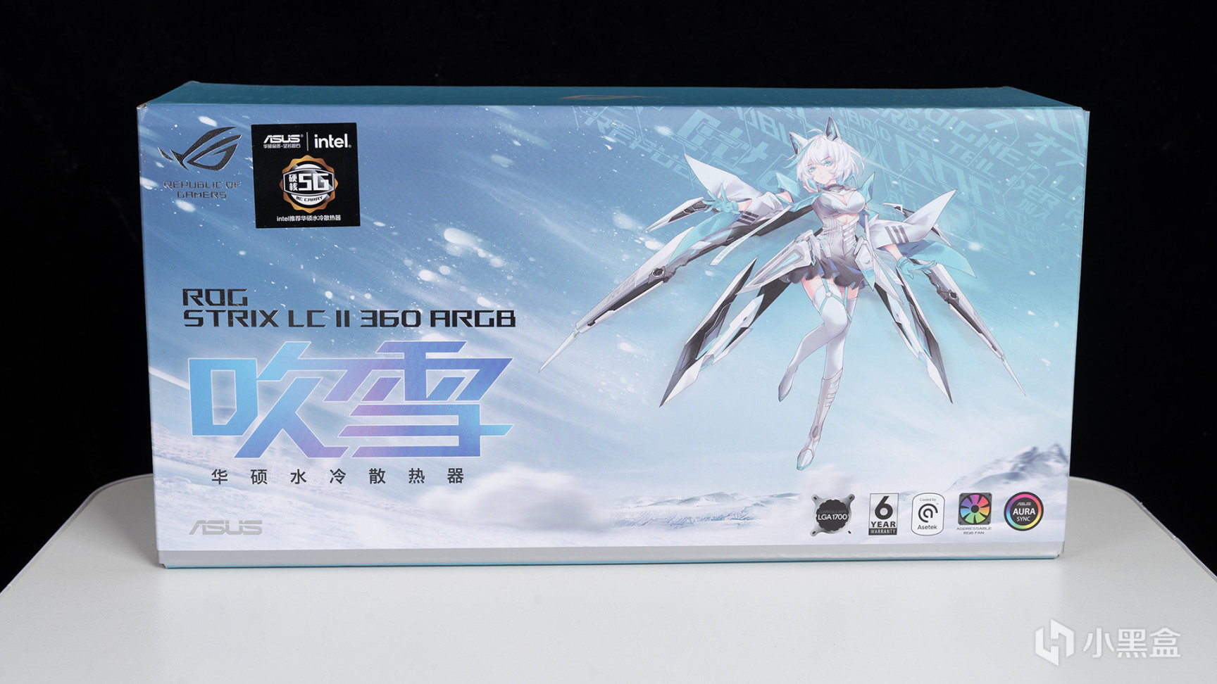 i7-13700K使用较好的360水冷还是能压制的,于是敲定ROG STRIX 吹雪360 ARGB这款,吹雪360在包装上采用了“雪舞战姬”的漫画风格为主题,实际上里面的产品和白龙 II 360是没什么区别的,倒是玩家可以用包装里的吹雪版贴纸进行DIY。