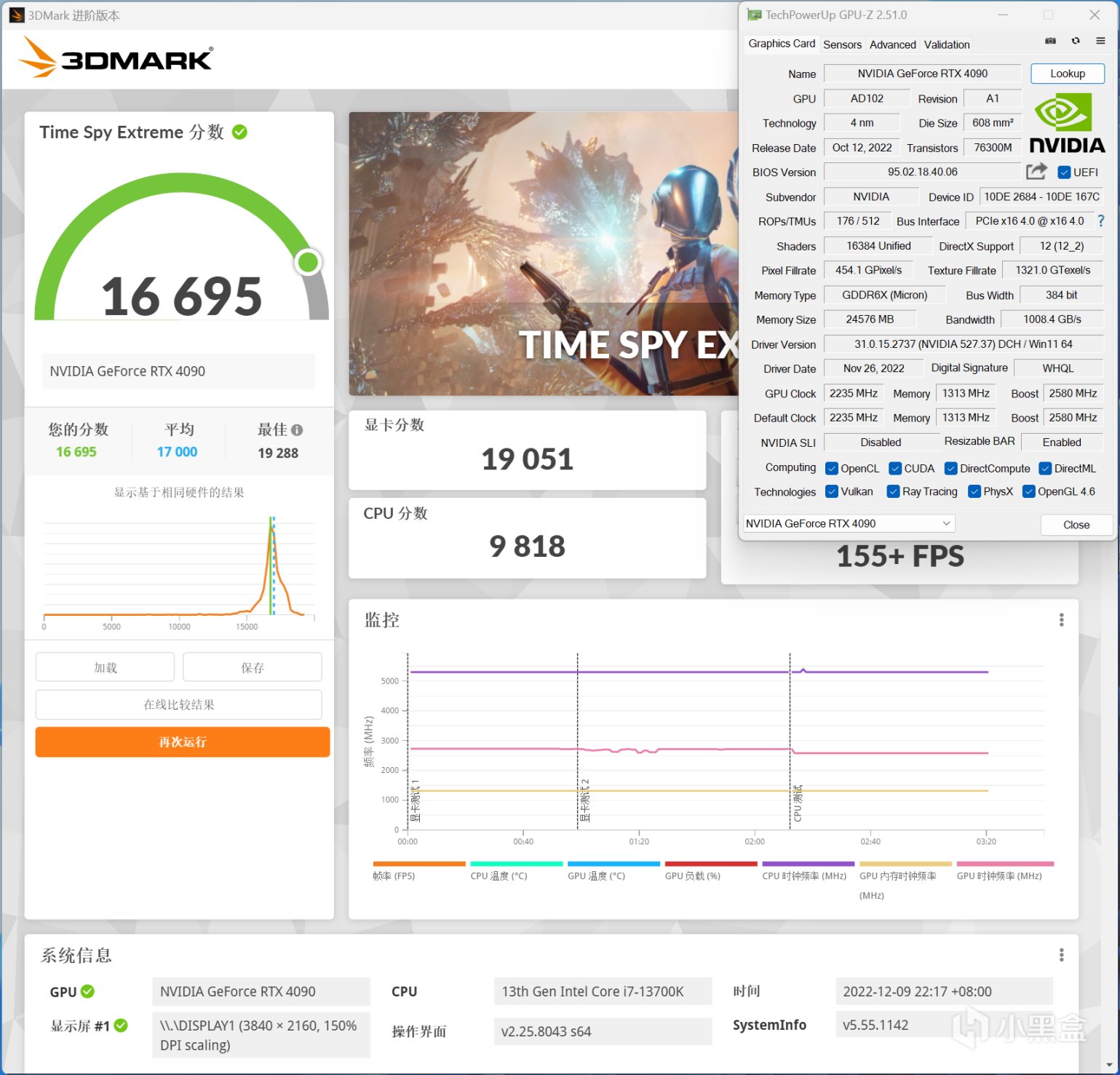 3DMark Time Spy Extreme项目,AX电竞叛客RTX4090 X3W显卡分数为19051