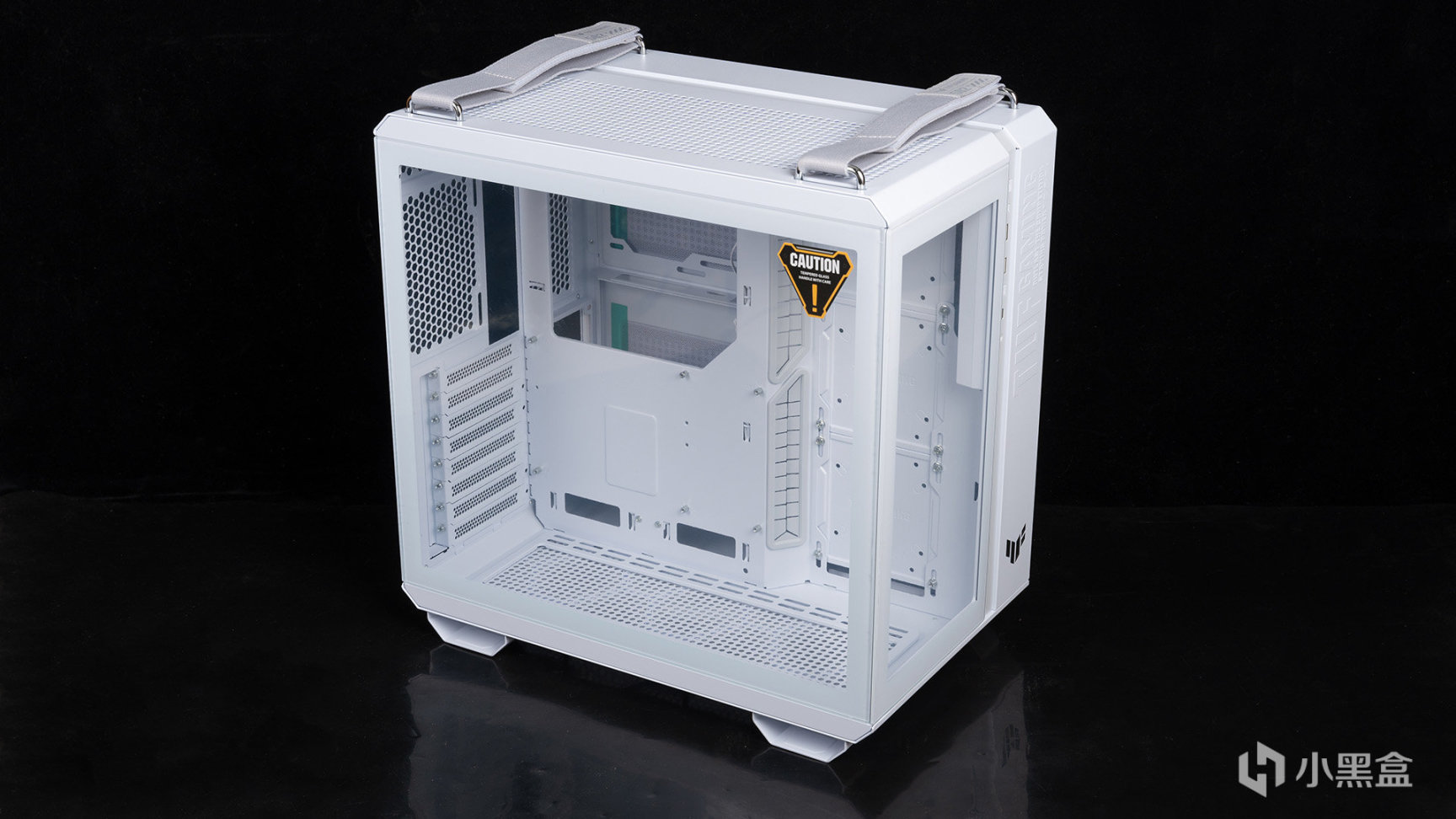 机箱选择华硕这款TUF GAMING GT502弹药库,属于最近比较火热的海景房类型,海景房机箱并不是什么新奇设计,更多是因为把从前的双仓结构优化之后,整体包括设计部分更受玩家青睐。第一眼最让人瞩目的是双面钢化玻璃,这种前部和侧部均配备的设计,可以让硬件在多个角度赏析时也能做到一览无遗。