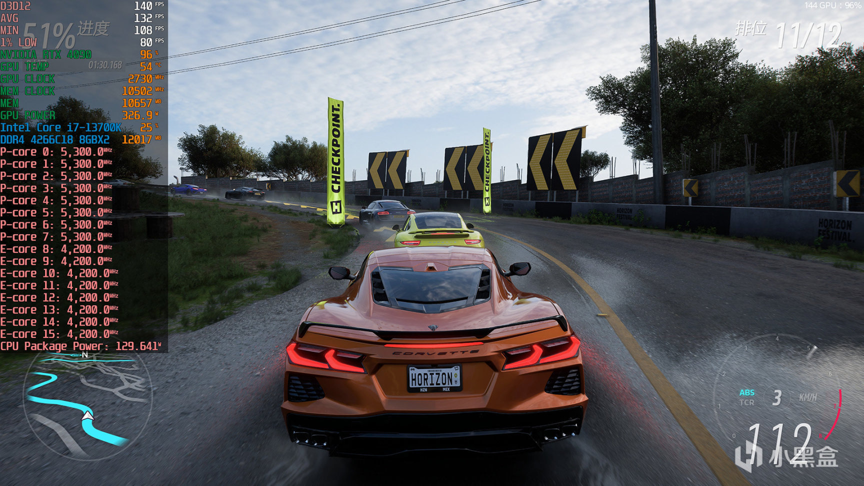 13700K+RTX4090+DDR4 4266 8GBX2,《极限竞速:地平线5》4K手动最高画质+最高光追+DLSS质量,平均帧数为132fps