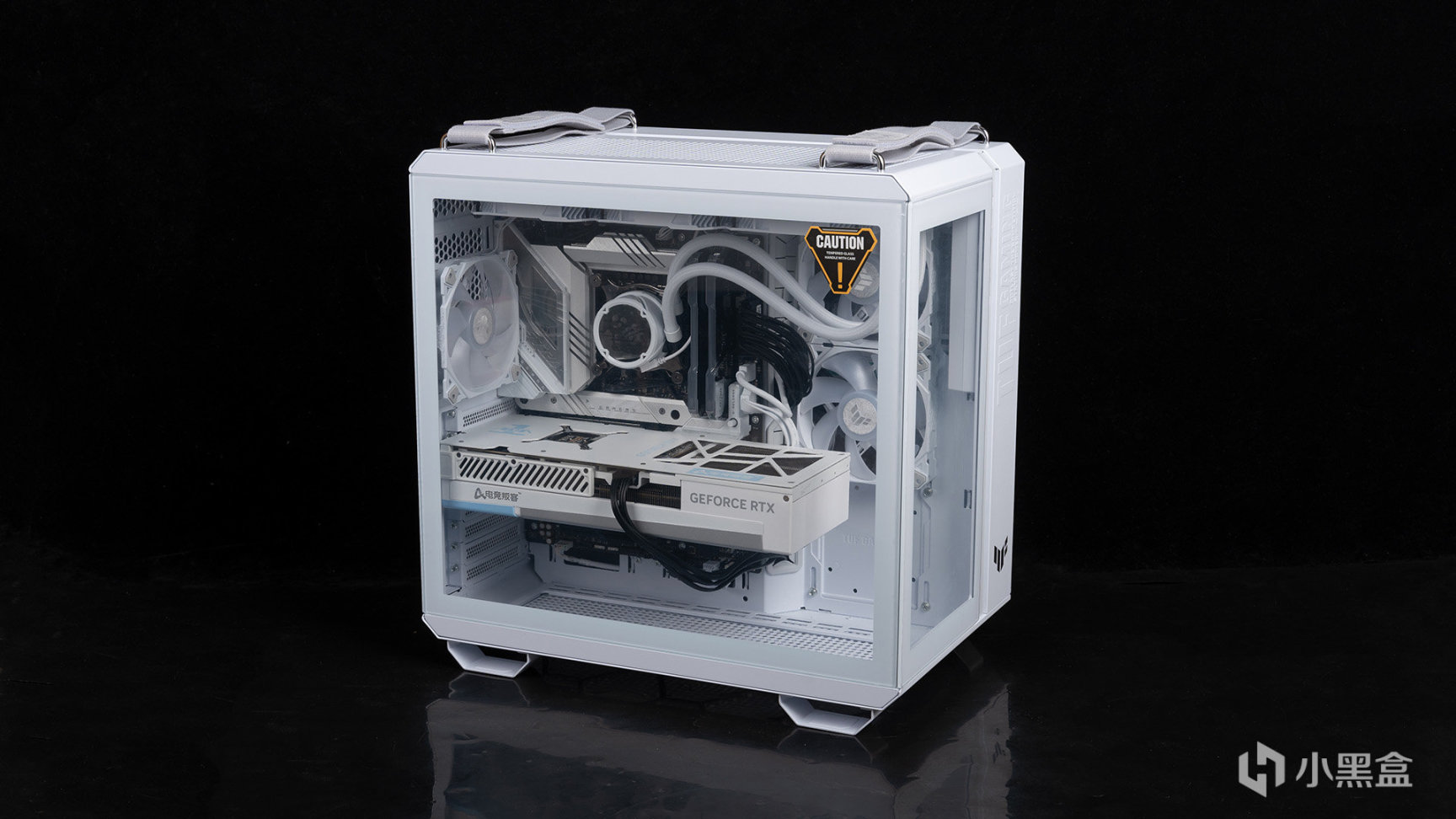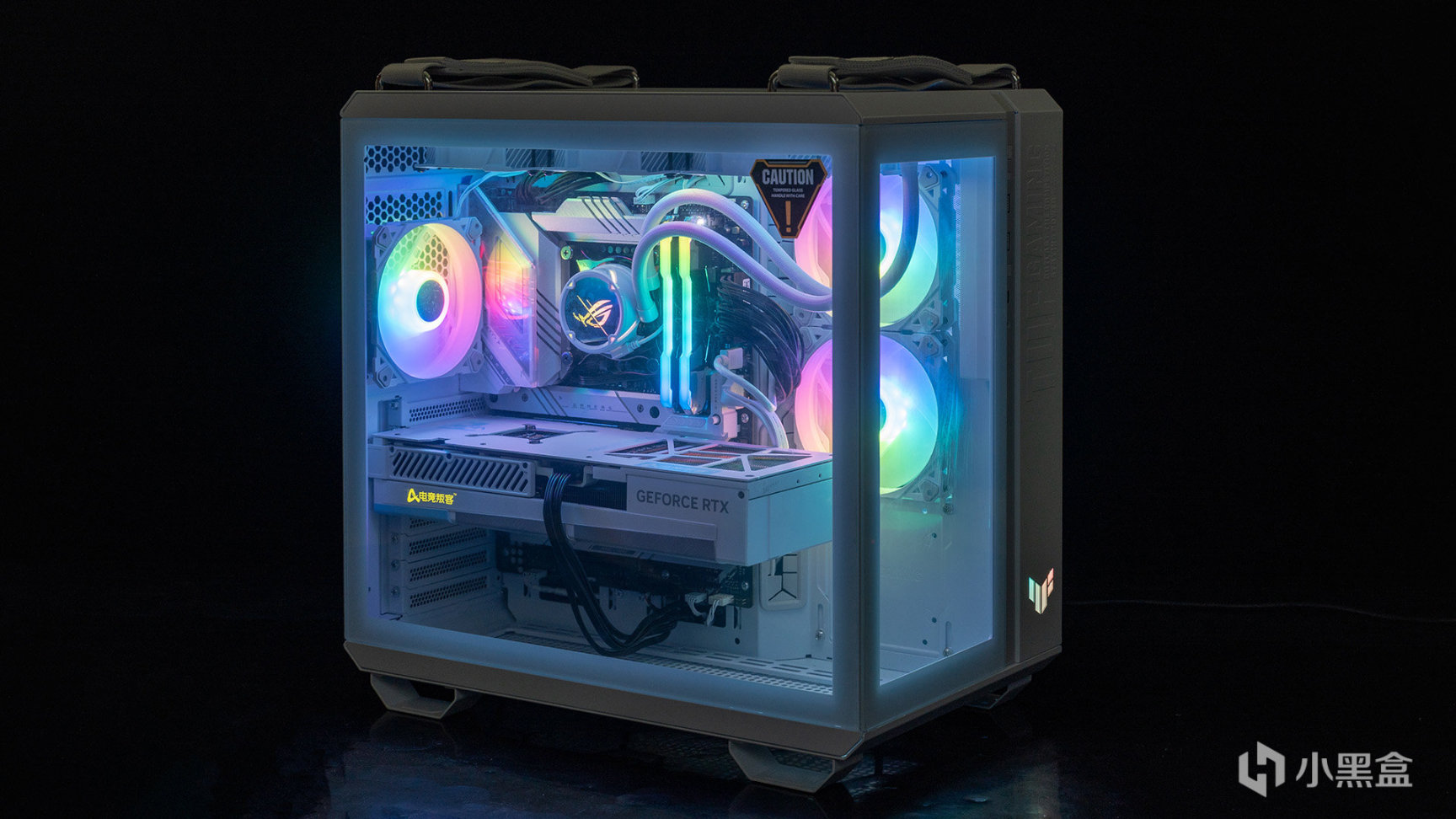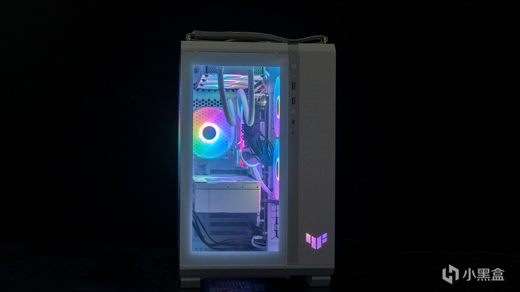 前面也能赏析内部硬件,妥妥的海景房,机箱TUF GAMING LOGO同样支持ARGB效果