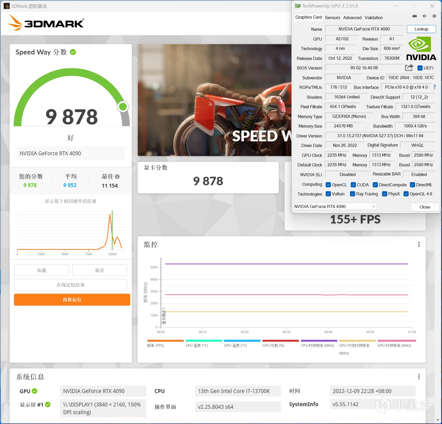 3DMark SPEED WAY光追结合光栅化项目,AX电竞叛客RTX4090 X3W显卡分数为9878