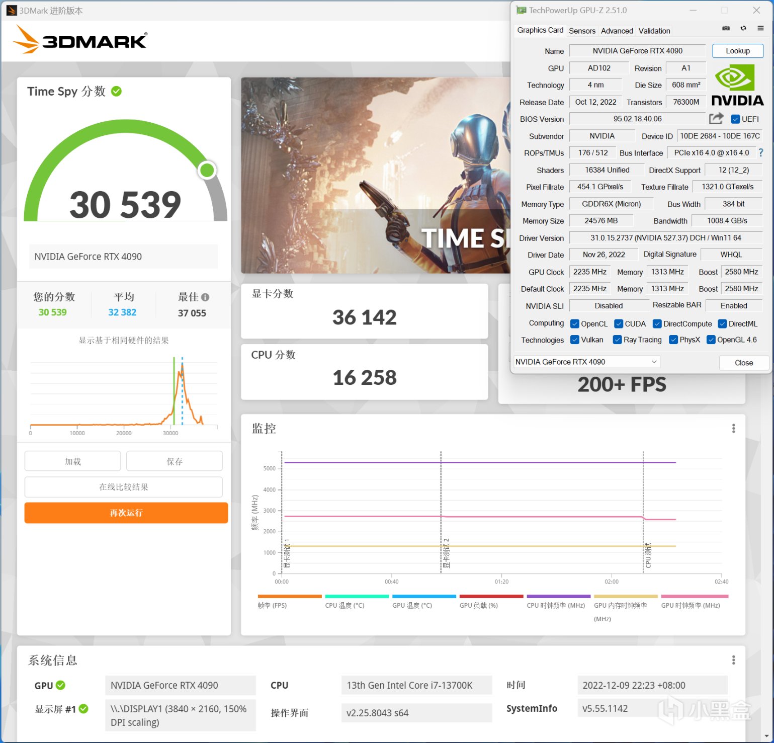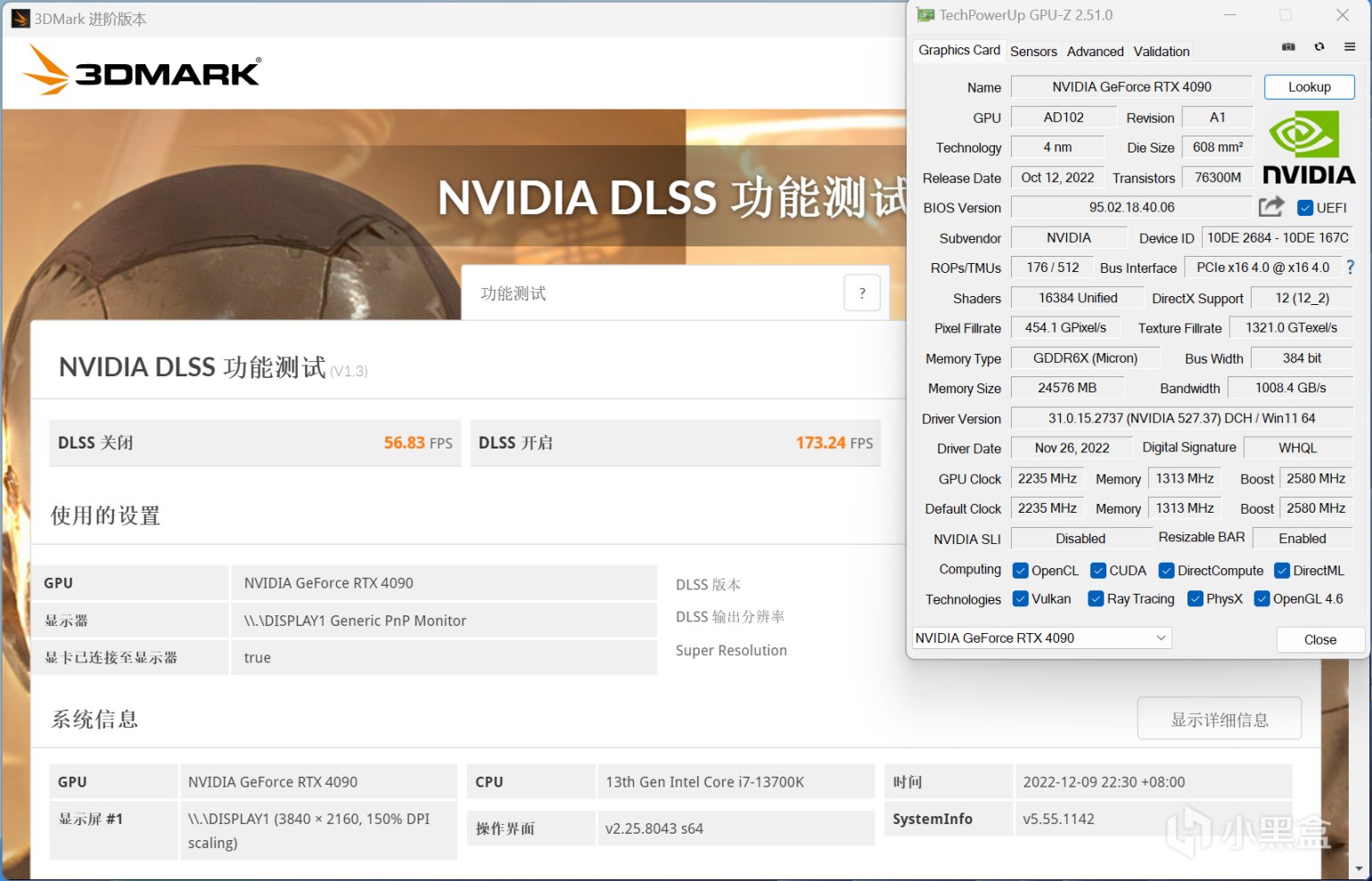 3DMARK理论跑分来说,RTX4090 X3W虽然是主打性价比,但是其性能一点不都低,基本和FE公版处于同一条水平线上,相比一些超顶级风冷非公也只有区区2%性能差距,性价比直接拉满,而RTX 40系可观的性能提升,一部分功劳可归功于补帧技术,本质上它还是属于DLSS 2,只不过是增强版的DLSS 2而已。
