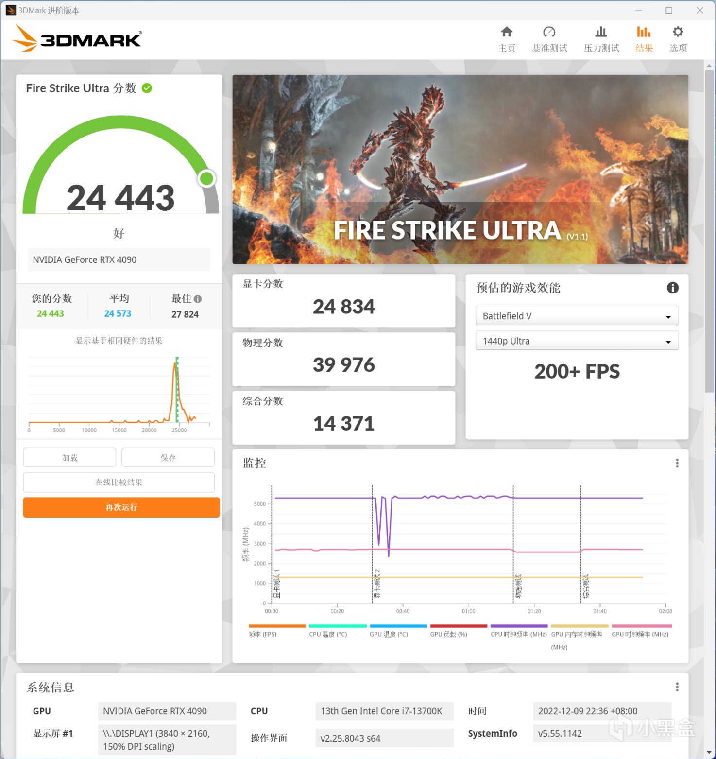 3DMark Fire Strike Ultra项目,AX电竞叛客RTX4090 X3W显卡分数为24834