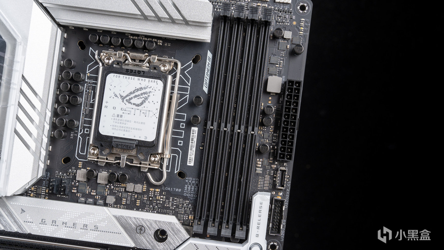 好感之处来源是I/O装甲上这个半透明+半镜面的ROG LOGO,支持AURA SYNC神光同步,而且两种材质区域并不是同一高度而是嵌套式的,以至于亮机以后不止有质感,而且是有一定立体感。主板供电采用16+1相整合型MOSFET,每相最大70A规格,用来带13700K自然是很轻松的。