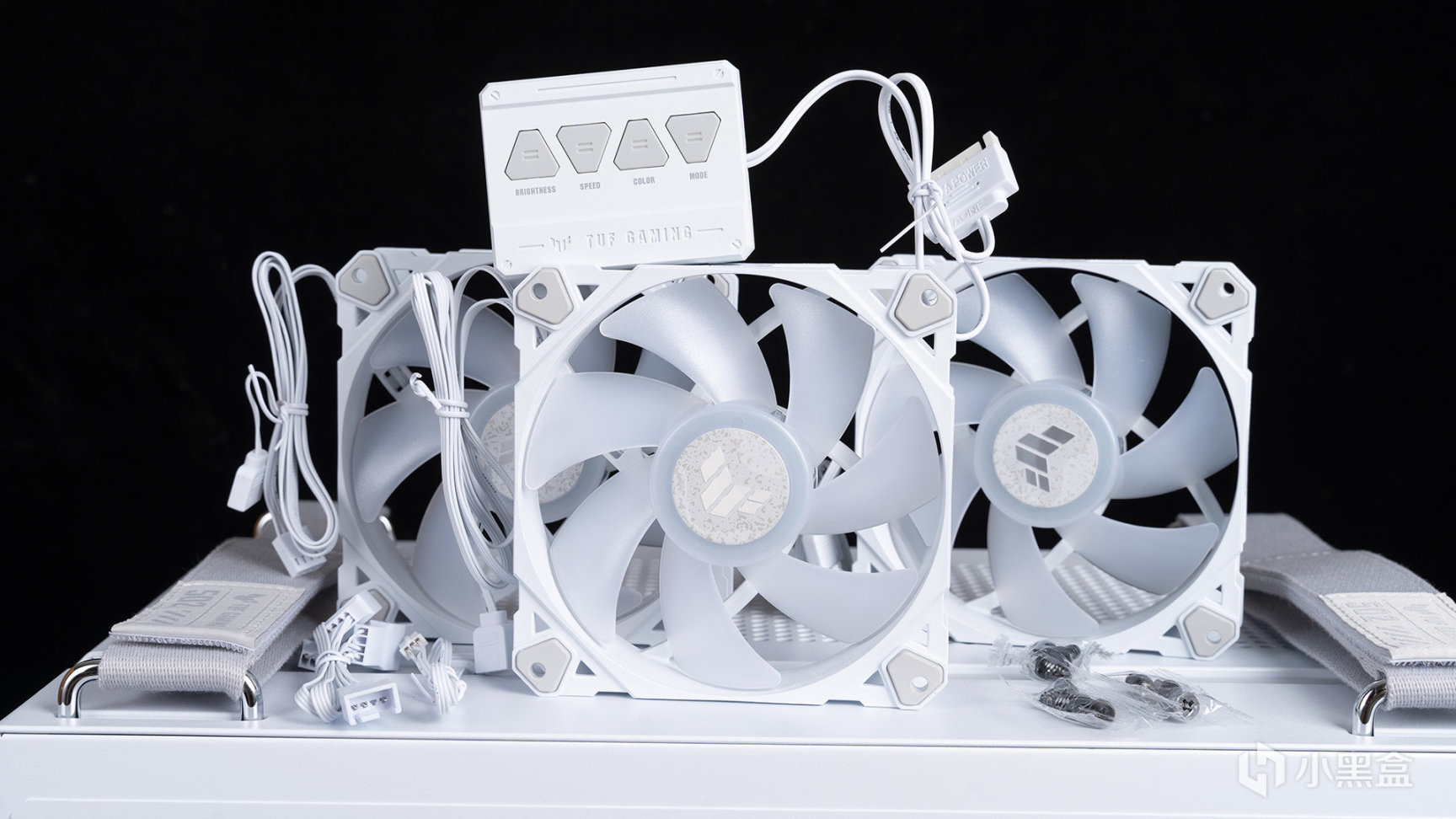 双仓结构的特点之一,一定是可支持安装大量风扇,故选择了华硕这套TUF GAMING TF120 ARGB风扇三连包,白色款对应白色GT502弹药库。