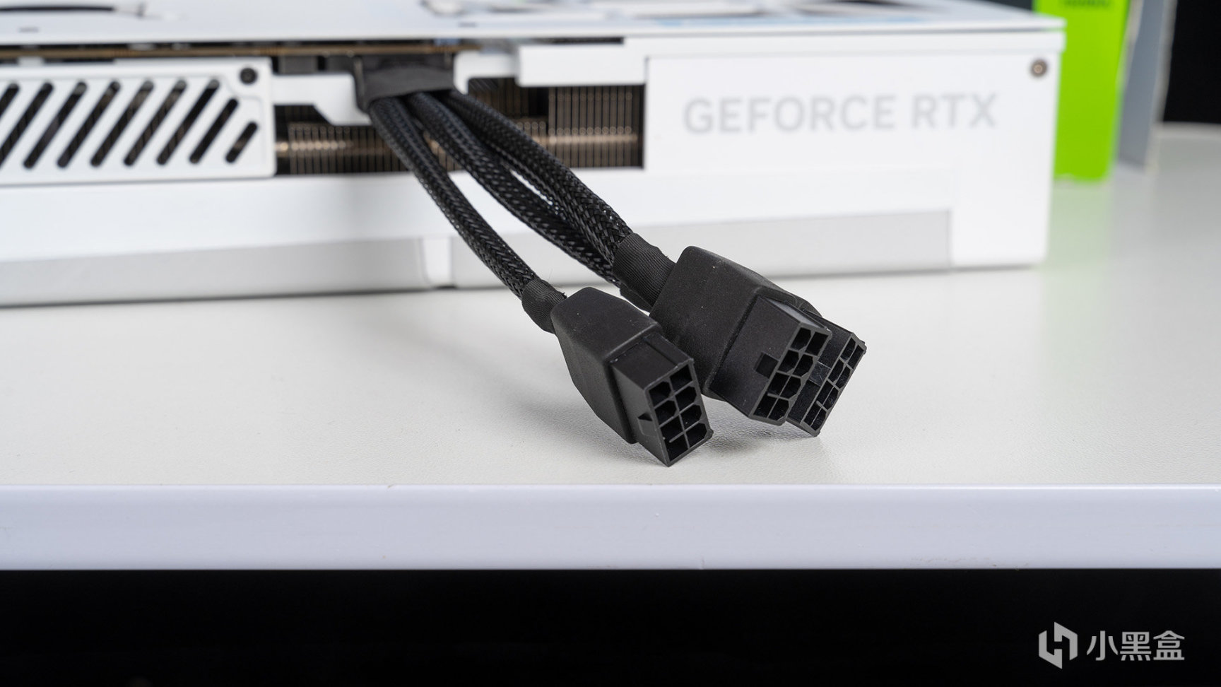 标配一根3*8Pin to 12VHPWR的转接线,并不是四个接口,这款显卡默认只有450W功耗,所以当然就够用。