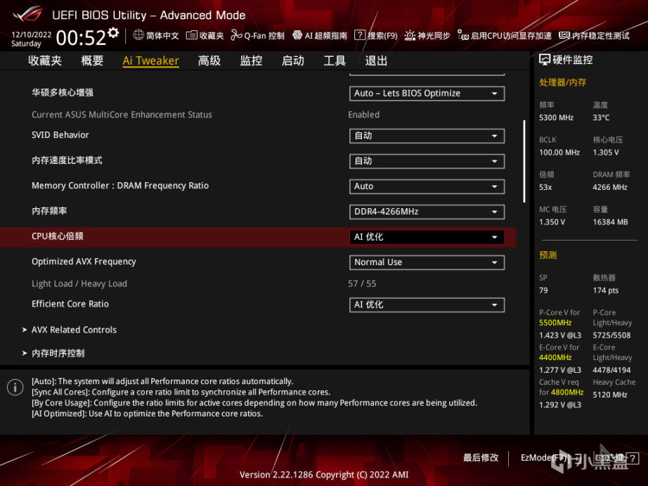 对于游戏玩家来说,建议可以开启Z790 D4吹雪BIOS中的AI优化功能,主板会根据你的CPU体质和散热器智能超频,这颗U设定P核心轻负载情况达到5.7GHz,重负载则是5.5GHz,比自己手动超频方便多了。