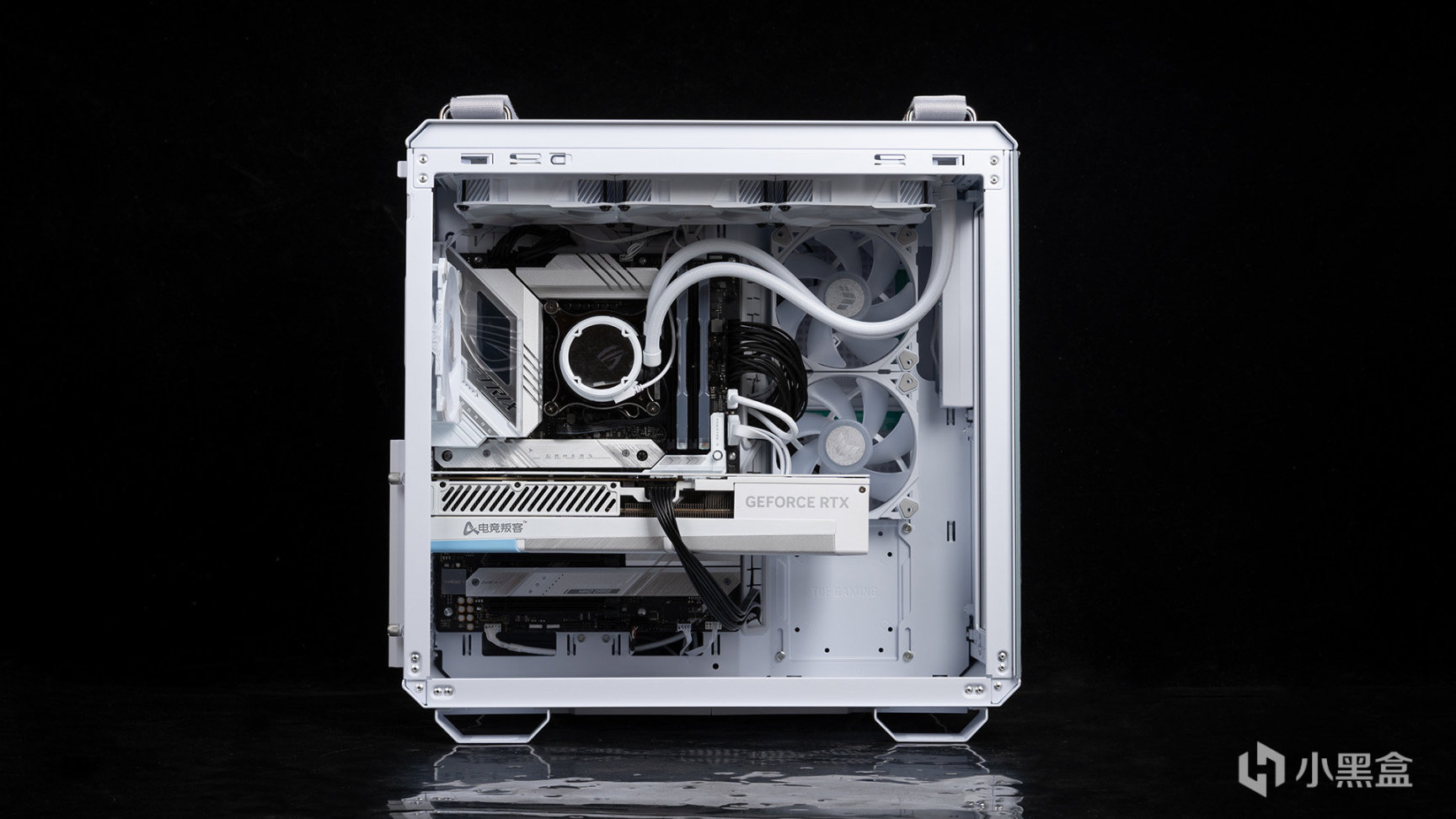 至于右边的多功能支架是安装了两个2.5英寸SSD,扩展性实属拉满,如果你只有M.2固态硬盘,这里也可以安装风扇,机箱一套强大又合符逻辑的风道就这样形成。
