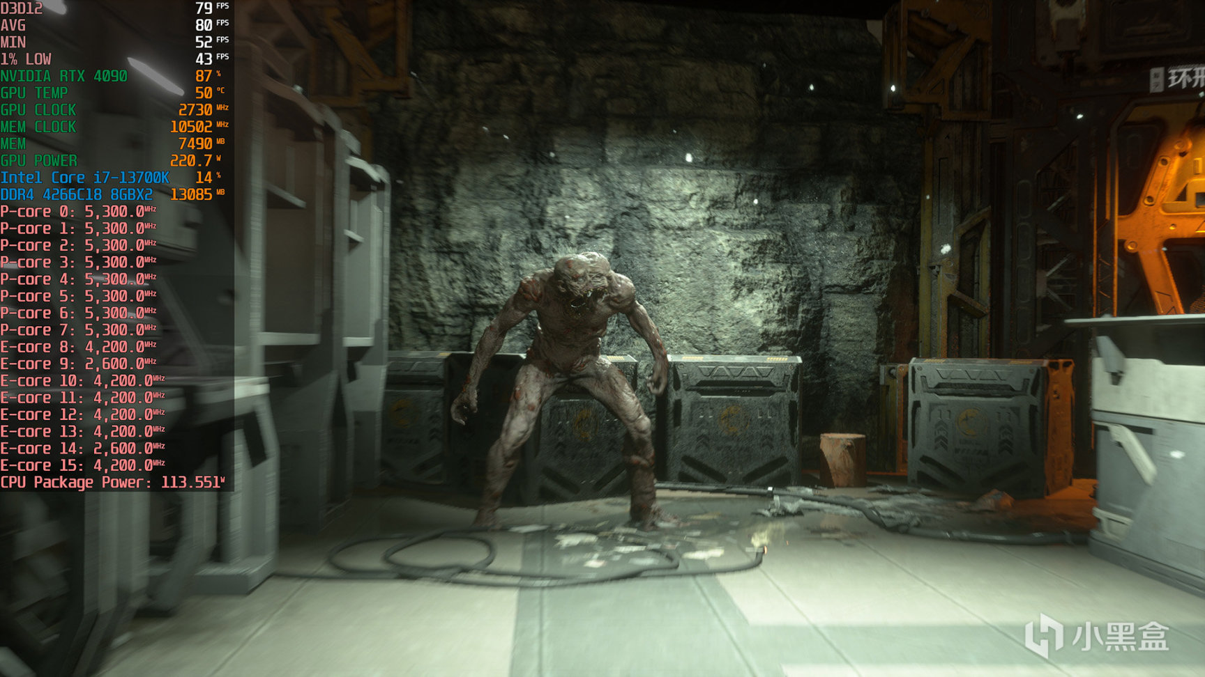 13700K+RTX4090+DDR4 4266 8GBX2,《木卫四协议》4K预设超高画质+最高光追+FSR 2.1质量,平均帧数为80fps
