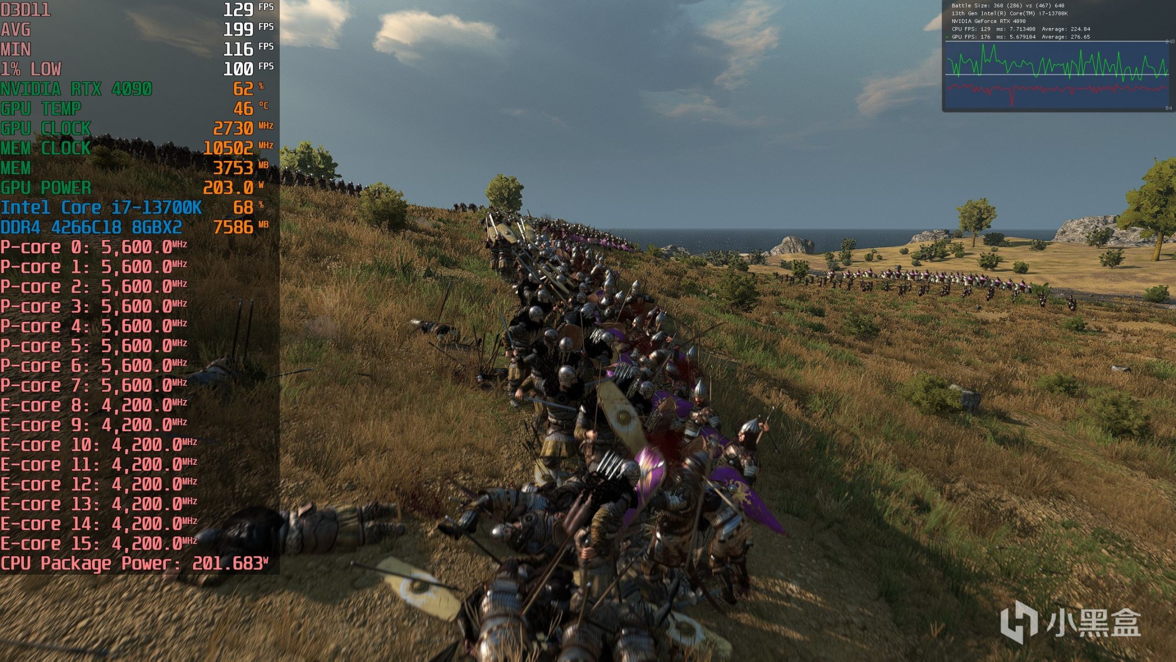 13700K+Z790 D4吹雪使用AI优化后,在《骑马与砍杀2》2K预设非常高画质下,P核心能达到5.6GHz(默认XMP档是5.3GHz),需要注意的是,这款游戏由于AI单位数量多比较吃CPU资源,其占用率达到了68%,所以没达到5.7GHz是正常的。